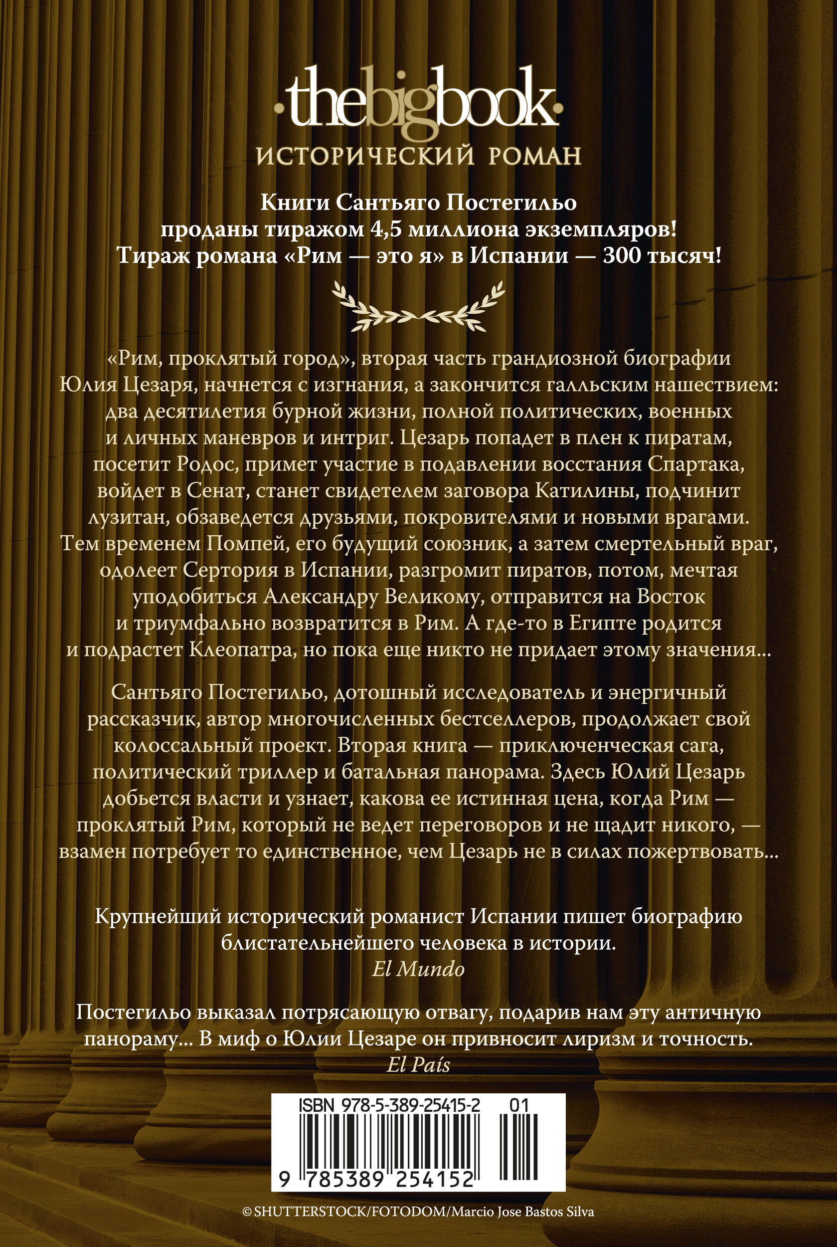 "Рим, проклятый город", вторая часть грандиозной биографии Юлия Цезаря, начнется с изгнания, а закончится галльским нашествием. Между этими событиями пройдут два десятилетия бурной жизни, полной политических, военных и личных маневров и интриг. Цезарь попадет в плен к пиратам (и обретет свободу), посетит Родос (и научится истинному красноречию), вернется на родину (и примет участие в подавлении восстания Спартака), войдет в Сенат, станет свидетелем заговора Катилины, заключит тройственный союз, который позволит ему возвыситься, подчинит лузитан, обзаведется друзьями, покровителями и новыми врагами. Тем временем Помпей, его союзник, а затем смертельный враг, коварством одолеет Сертория в Испании, разгромит пиратов, затем, мечтая уподобиться Александру Великому, отправится на Восток и триумфально возвратится в Рим. А где-то в Египте родится и подрастет Клеопатра, но пока еще никто не придает этому значения...