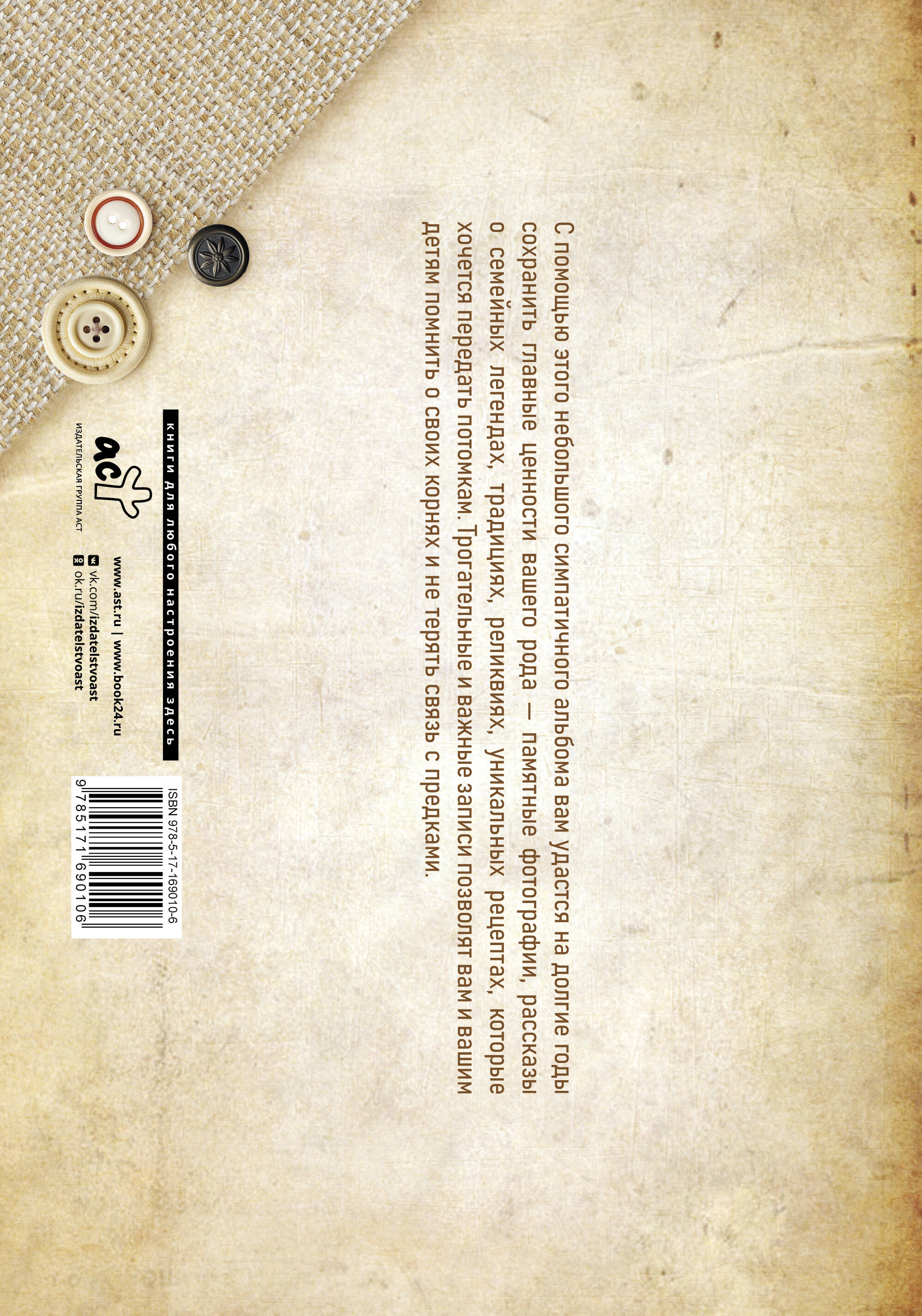 С помощью этого небольшого симпатичного альбома вам удастся на долгие годы сохранить главные ценности вашего рода — памятные фотографии, рассказы о семейных легендах, традициях, реликвиях, уникальных рецептах, которые хочется передать потомкам. Трогательные и важные записи позволят вам и вашим детям помнить о своих корнях и не терять связь с предками.