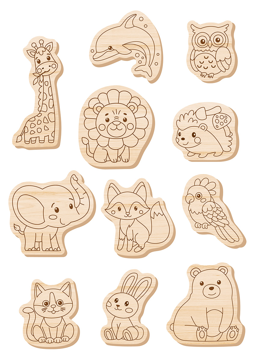 Набор Роспись по дереву «Животные» - это 12 фигурок животных: дельфин, лиса, медведь, кот, попугай, заяц, сова, ёжик, лев, слон, жираф, которые нужно раскрасить. Все необходимое для творчества входит в набор!