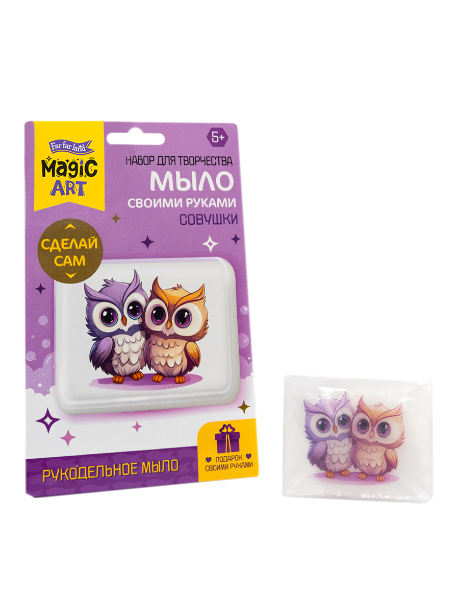 Набор для изготовления мыла «Совушка» с картинкой - набор, с помощью которого ребенок может сделать приятный подарок своим близким и друзьям. Для этого потребуется внимание, ответственность и строгое соблюдение инструкции. Единственным ограничением является контроль и помощь со стороны взрослых при нагреве и манипуляциях с горячей мыльной основой.