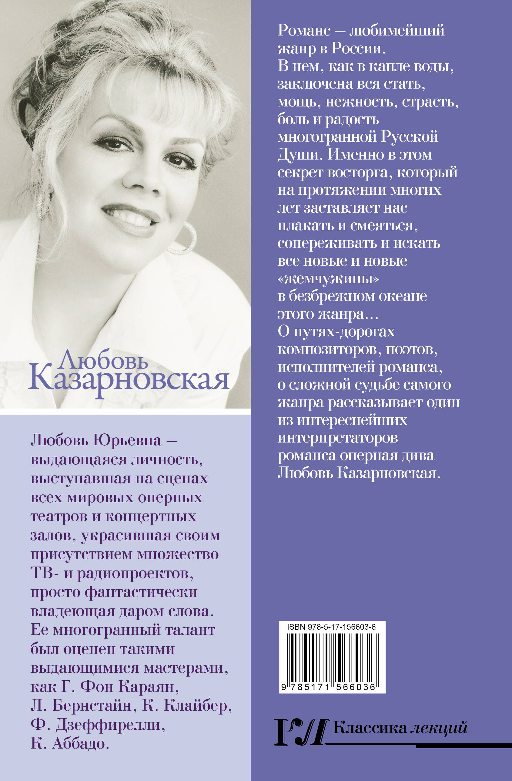 Романс – любимейший жанр в России. В нем как в капле воды заключена вся стать, мощь, нежность, страсть, боль и радость многогранной Русской Души. Именно в этом секрет восторга, который на протяжении многих лет заставляет нас плакать и смеяться, сопереживать и искать все новые и новые "жемчужины" в безбрежном океане этого жанра... О путях-дорогах композиторов, поэтов, исполнителей романса, о сложной судьбе самого жанра рассказывает один из интереснейших интерпретаторов романса, оперная дива Любовь Казарновская.