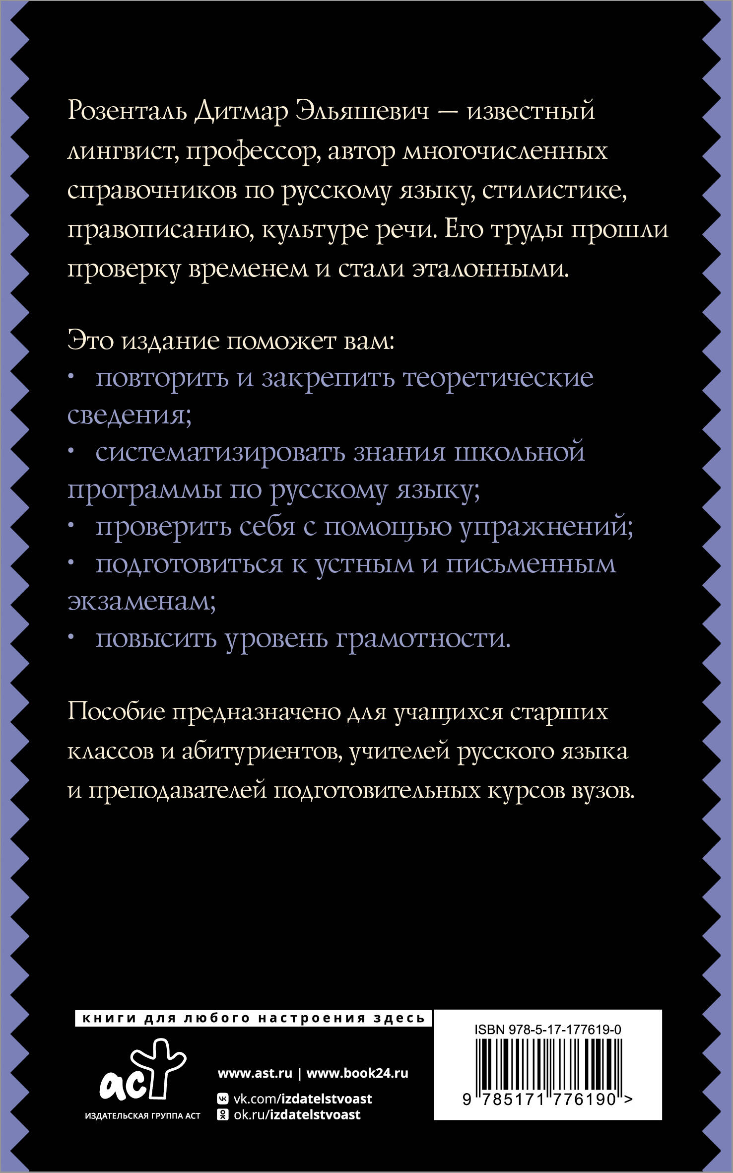 Розенталь Дитмар Эльяшевич – лингвист, профессор, известный автор многочисленных справочников по русскому языку, стилистике, правописанию, культуре речи. Труды Д. Э. Розенталя проверены временем и признаны эталонными.