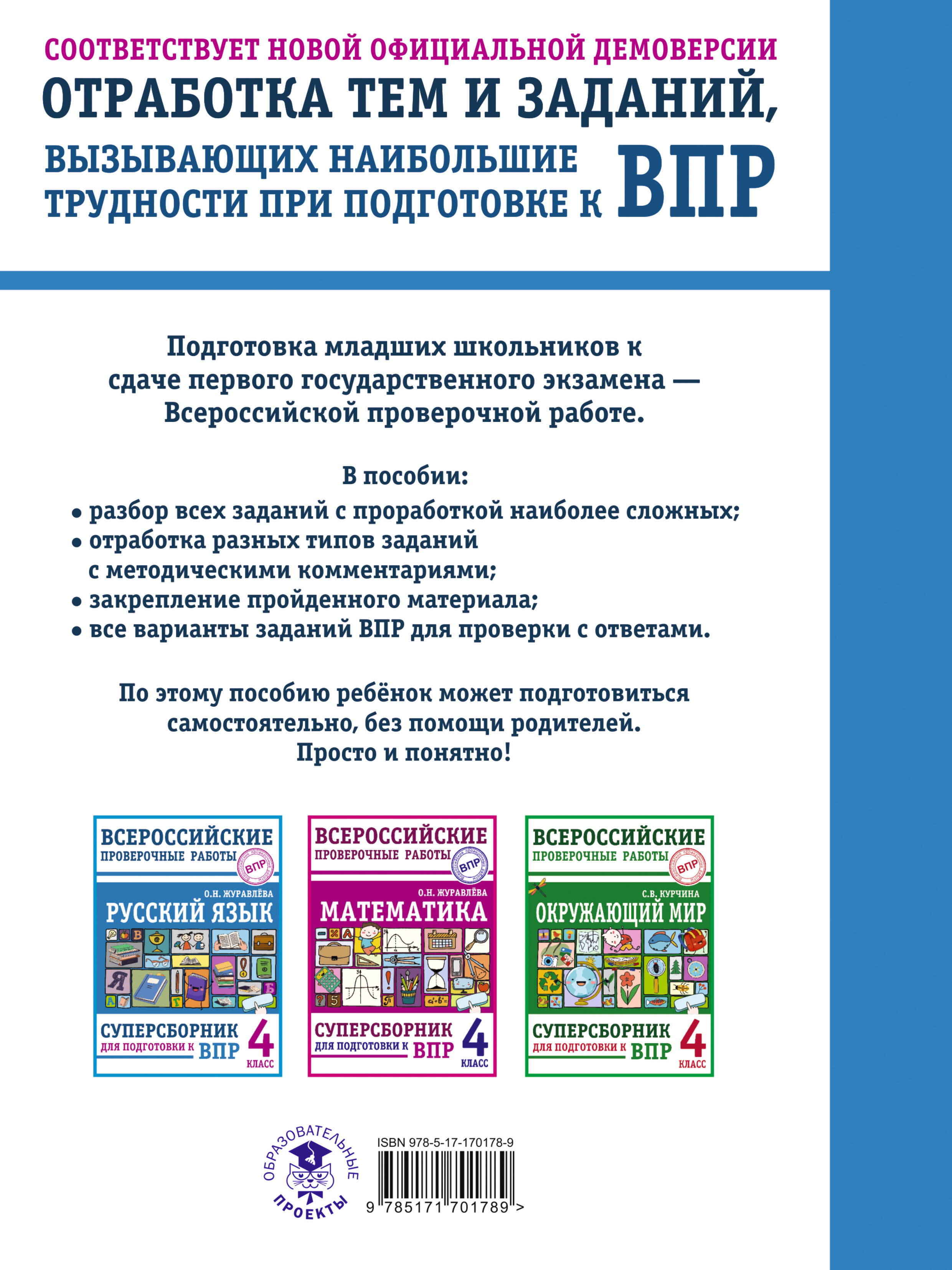 Книга предназначена для подготовки учащихся 4 классов к ВПР по русскому языку. Дети познакомятся со структурой и содержанием Всероссийской проверочной работы, узнают о количестве заданий, их форме и уровне сложности. Пособие соответствует новой официальной демоверсии ВПР.