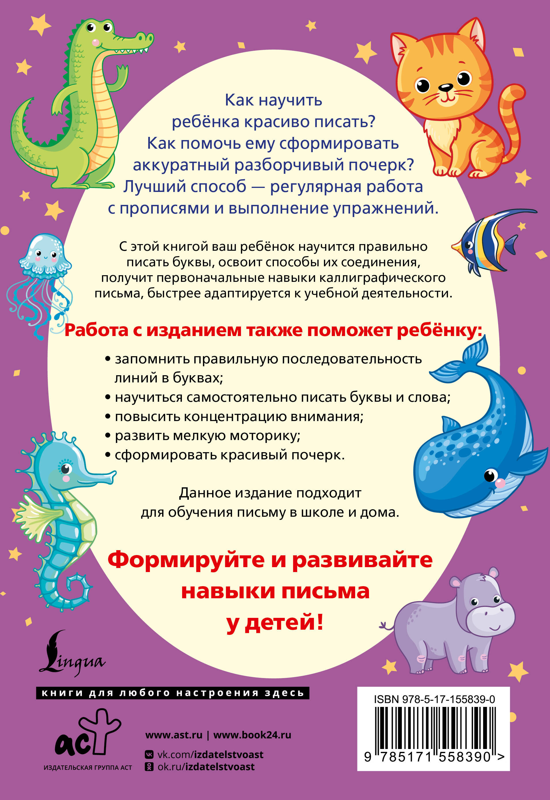 Данное издание поможет развить и закрепить навык письма у детей. Работа с тетрадью-тренажёром способствует развитию зрительного восприятия и мелкой моторики, формированию каллиграфического почерка, координации движений руки.