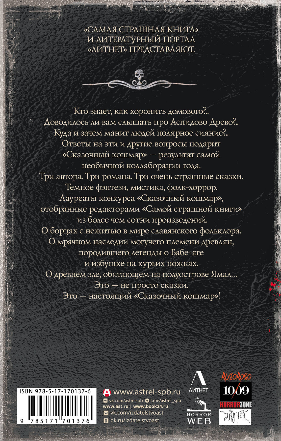 Три автора. Три романа. Три очень страшные сказки. Темное фэнтези, мистика, фолк-хоррор. Лауреаты конкурса "Сказочный кошмар", отобранные редакторами "Самой страшной книги" из более чем сотни произведений.