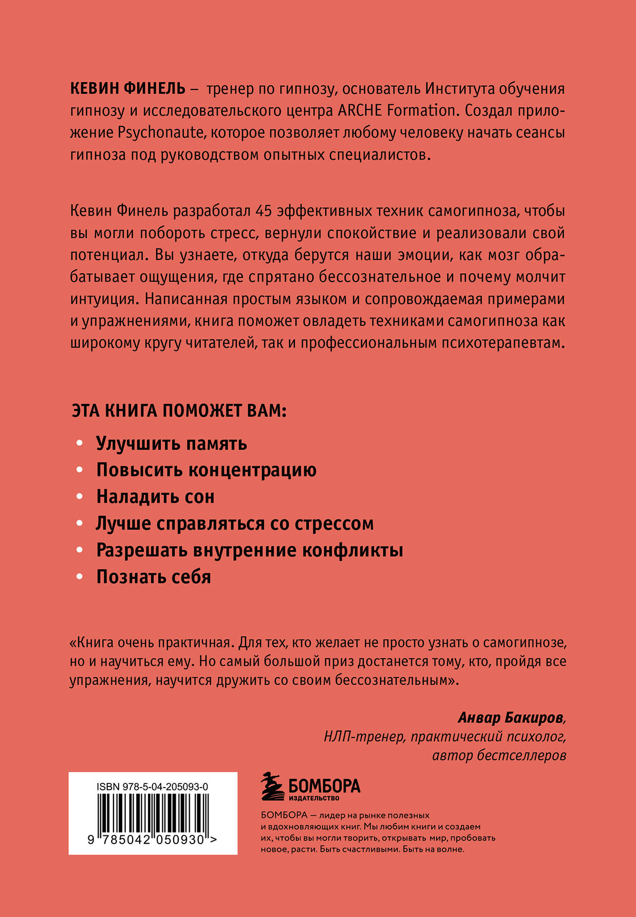 Кевин Финель разработал 45 эффективных техник самогипноза, чтобы вы могли побороть стресс, вернули спокойствие и реализовали свой потенциал. Вы узнаете, откуда берутся наши эмоции, как мозг обрабатывает ощущения, где спрятано бессознательное и почему молчит интуиция. Написанная простым языком и сопровождаемая примерами и упражнениями, книга поможет овладеть техниками самогипноза как широкому кругу читателей, так и психотерапевтам, желающим добавить самогипноз в свой терапевтический арсенал.