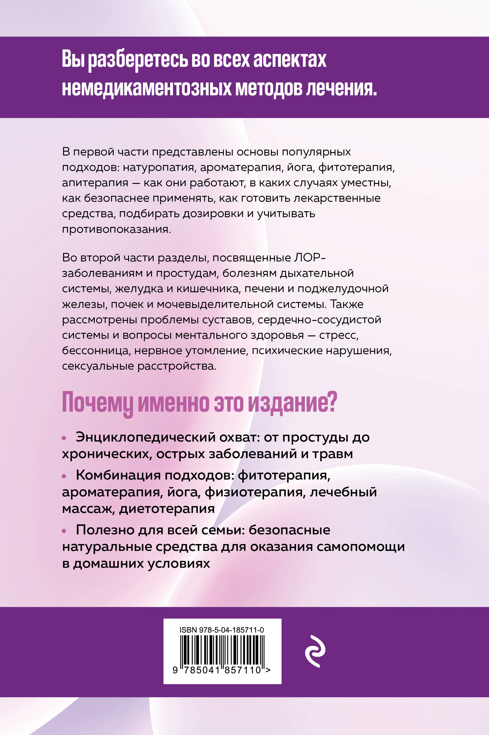 В первой части вы разберётесь в основах популярных подходов: натуропатия, ароматерапия, йога, фитотерапия, апитерапия — как они работают, показания к применению, как безопаснее использовать, как готовить средства, подбирать дозировки и учитывать индивидуальные особенности организма.