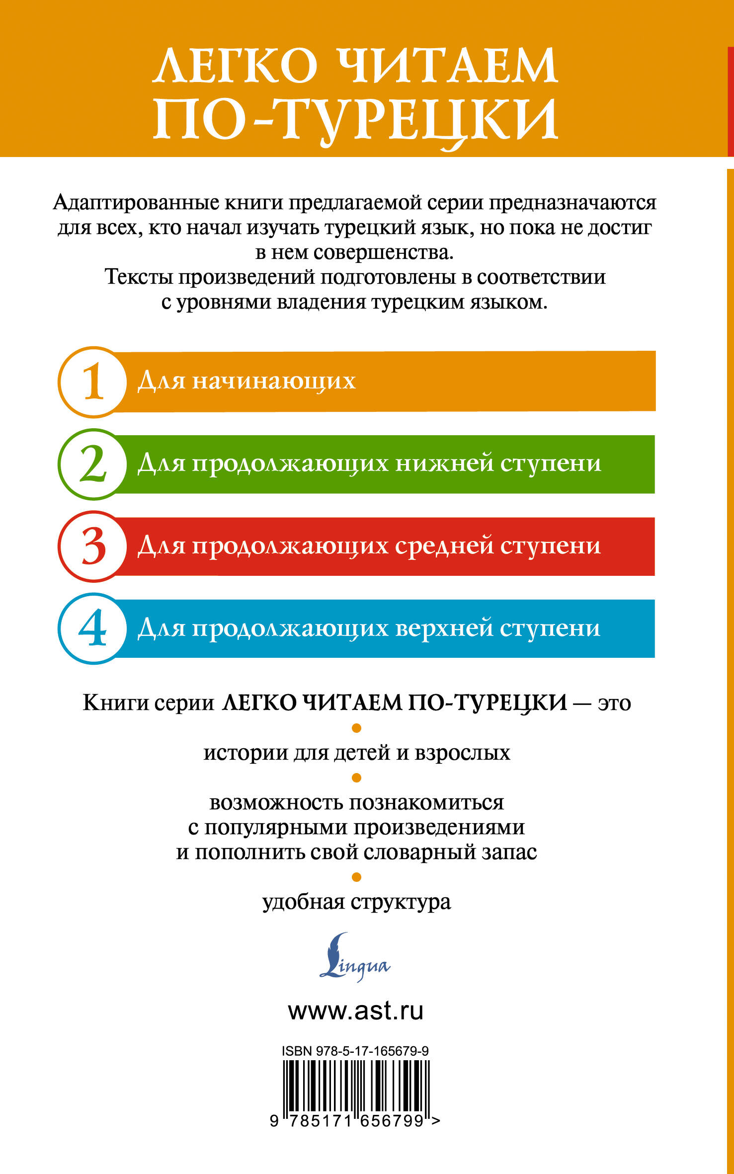 Вы прочитаете адаптированные рассказы известного турецкого писателя Халида Зия Ушаклыгиля, после которых сможете выполнить упражнения по тексту и сразу же себя проверить. В конце сборника приводится словарь, который позволит найти нужное слово без обращения к сторонним источникам. Тексты сопровождаются небольшими комментариями, с помощью которых вы лучше поймете значение отдельных фраз или реалии страны изучаемого языка.
