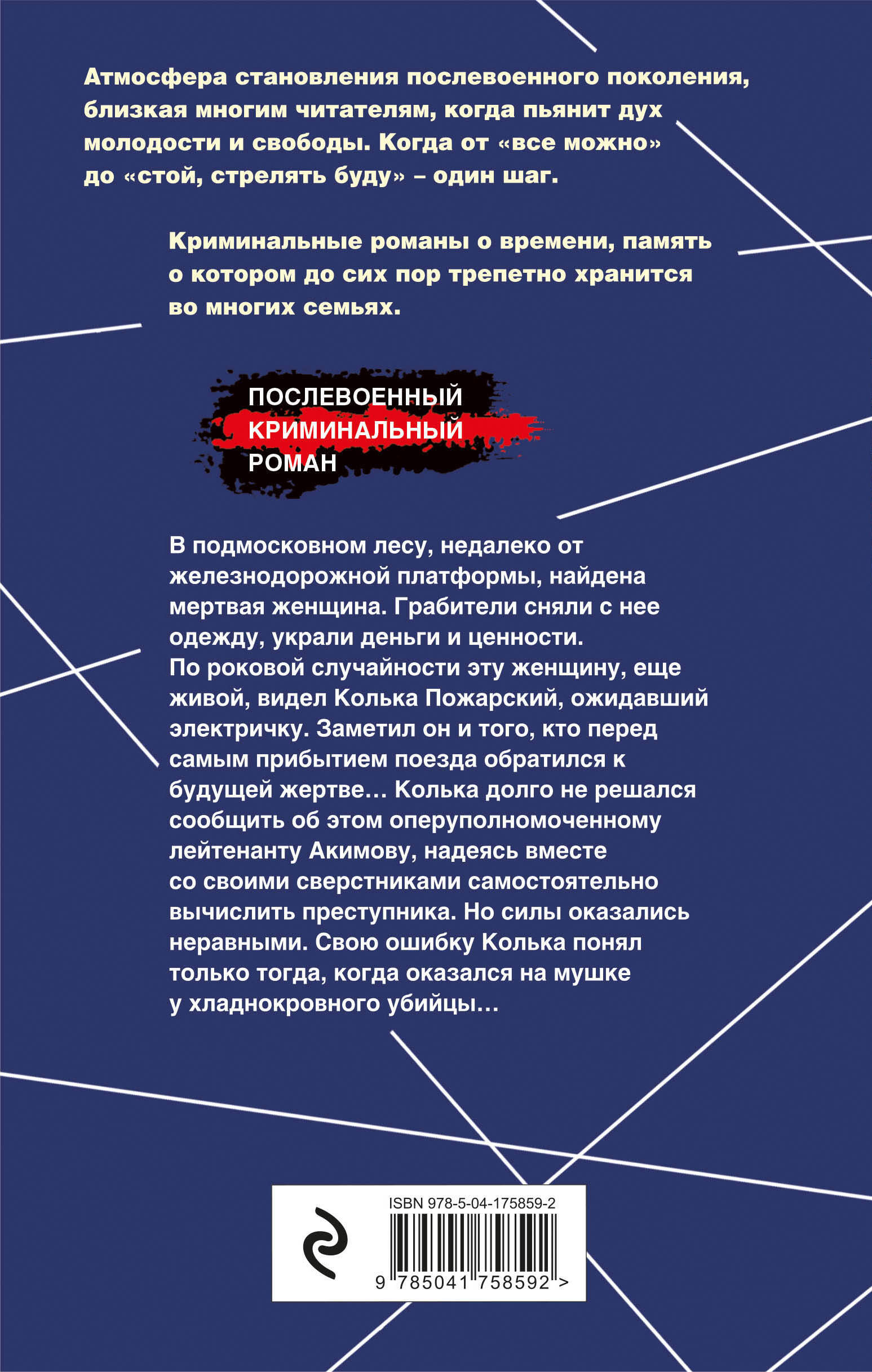 В подмосковном лесу недалеко от железнодорожной платформы найдена мертвая женщина. Грабители сняли с нее одежду, украли деньги и ценности. По роковой случайности эту женщину, еще живой, видел Колька Пожарский, ожидавший электричку. Заметил он и того, кто перед самым прибытием поезда обратился к будущей жертве… Колька долго не решался сообщить об этом оперуполномоченному лейтенанту Акимову, надеясь вместе со своим сверстниками самостоятельно вычислить преступника. Но силы оказались неравными. Свою ошибку Колька понял только тогда, когда оказался на мушке хладнокровного убийцы…
