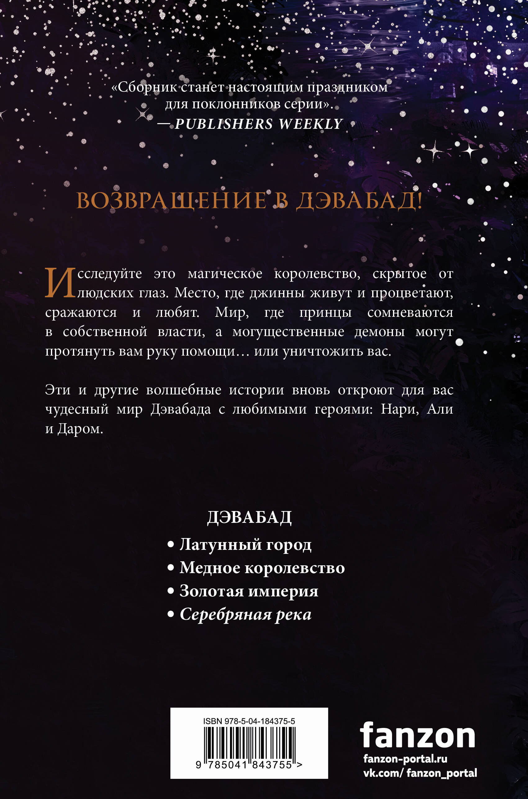 Собранные под одной обложкой, эти истории о Дэвабаде обогащают и без того наполненный волшебством и чудесами мир. Исследуйте это магическое королевство, скрытое от людских глаз. Место, где джинны живут и процветают, сражаются и любят. Мир, где принцы сомневаются в собственной власти, а могущественные демоны могут протянуть вам руку помощи… или уничтожить вас.