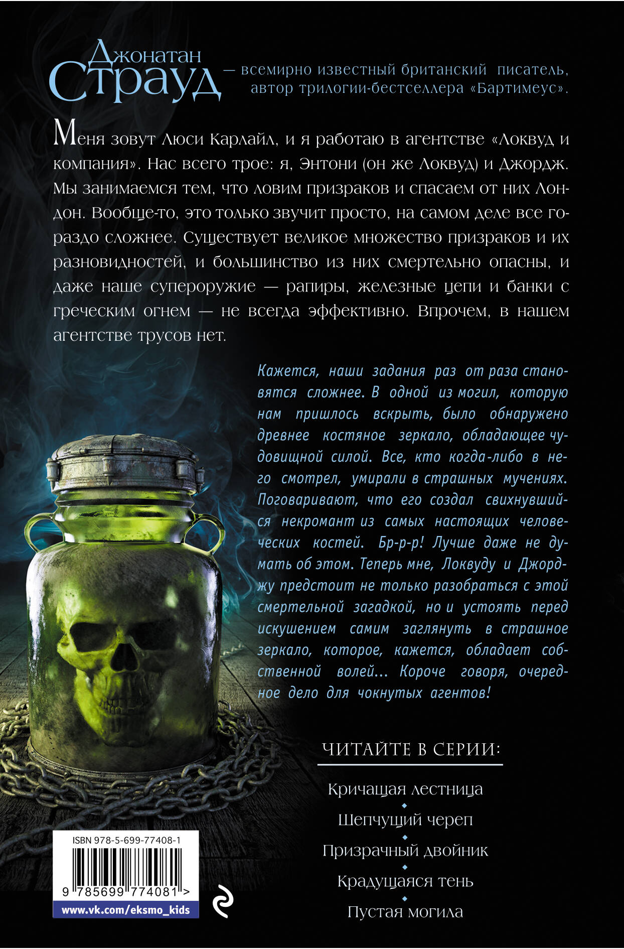 Меня зовут Люси Карлайл, и я работаю в «Локвуд и Ко». Нас всего трое: Энтони Локвуд, Джордж и я – и мы боремся с призраками, которые заполонили Лондон. Призраков существует великое множество, и большинство из них смертельно опасны! Даже супероружие: железные цепи и банки с греческим огнем — не всегда спасает. Но трусов в агентстве нет.