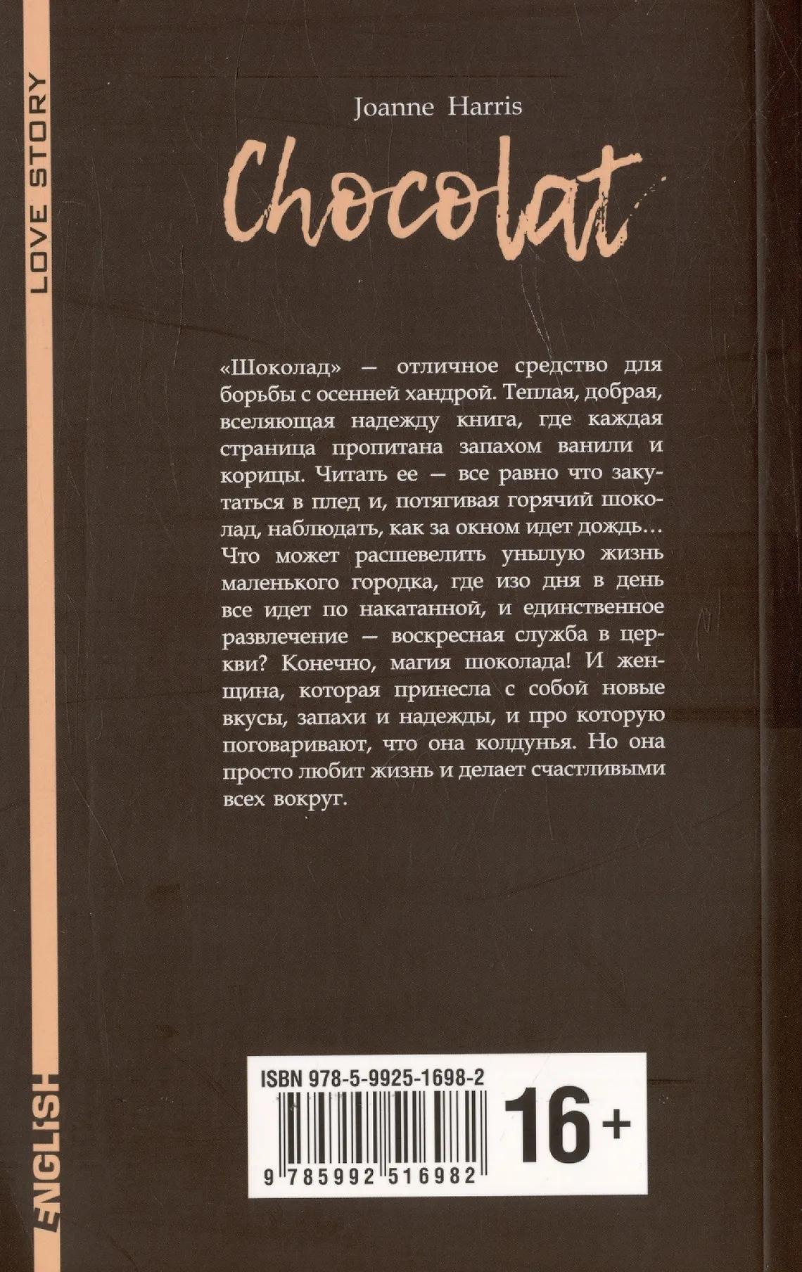"Шоколад" - отличное средство для борьбы с осенней хандрой. Теплая, добрая, вселяющая надежду книга, где каждая страница пропитана запахом ванили и корицы. Читать ее - все равно что закутаться в плед и, потягивая горячий шоколад, наблюдать, как за окном идет дождь…