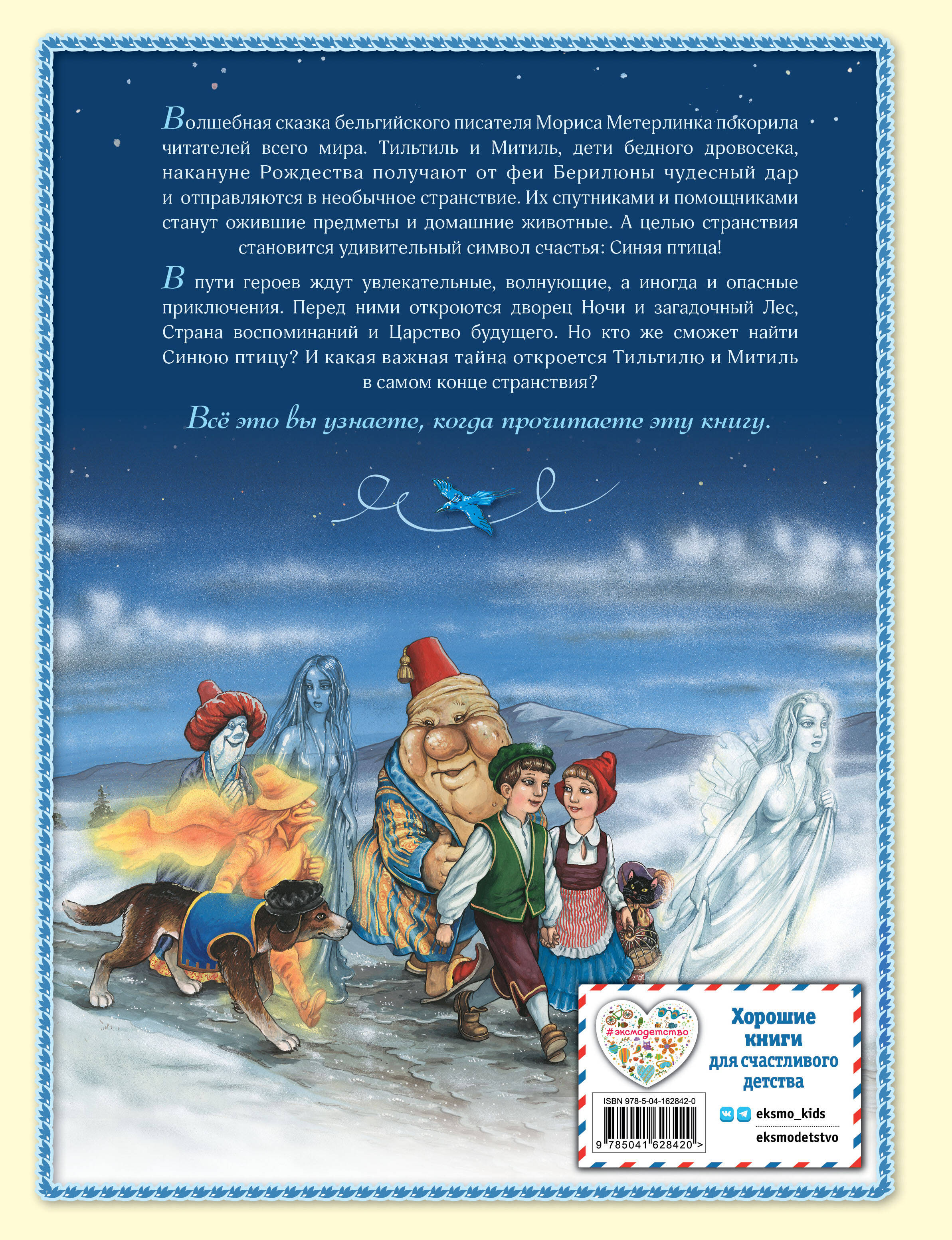 Путешествие Тильтиля и Митиль будет непростым, а иногда и опасным: через Страну Воспоминаний и Царство Будущего, из Дворца Ночи — в волшебный Лес… Но в конце пути им откроется главная тайна Синей птицы. Хотите узнать, какая? Тогда — вперёд, в сказочный путь!