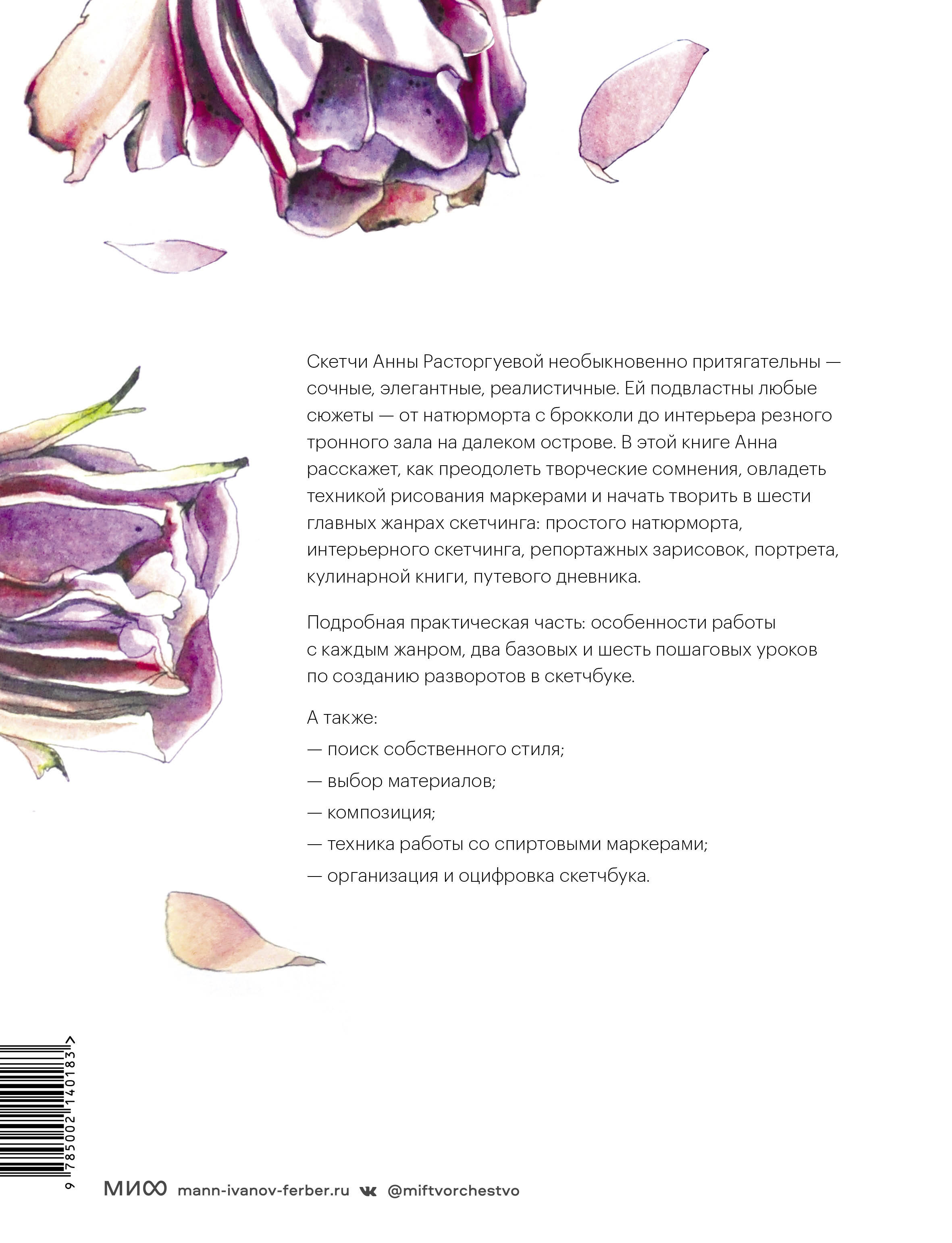 Новое издание бестселлера МИФа "Скетчинг маркерами с Анной Расторгуевой". Рисунки автора необыкновенно притягательны — сочные, элегантные, реалистичные. Анне подвластны любые сюжеты: от брокколи до резного тронного зала на далеком острове. В этой книге она расскажет, как преодолеть творческую робость и начать рисовать. Вы узнаете: