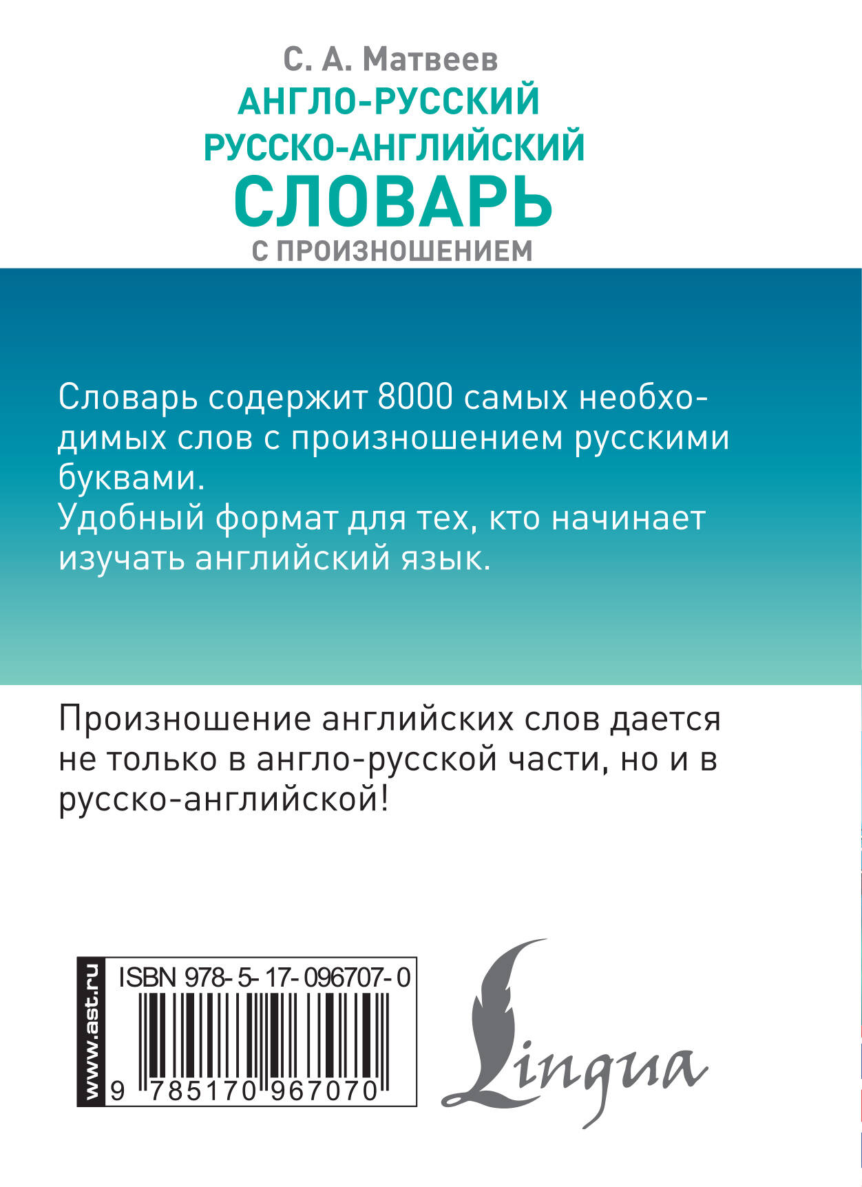 "Англо-русский русско-английский словарь с произношением" отличается от других подобных словарей тем, что произношение английских слов дано русскими бувами, причем не только в англо-русской части, но и в русско-английской.
