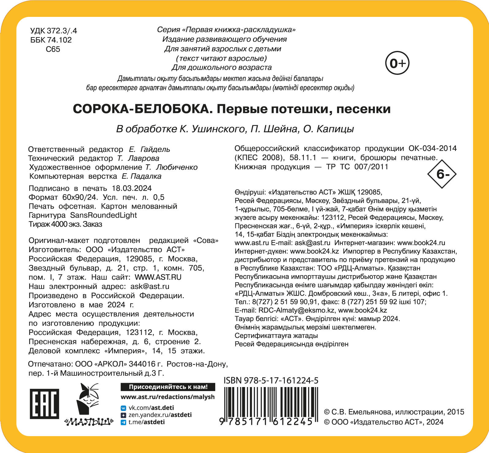 • Каждая книжка-малышка этой серии — занимательная, полезная игра со страничками, которые раскладываются гармошкой. Формат книги удобен для маленьких детских ручек. Страницы имеют безопасные закруглённые края. Плотный картон с глянцевой плёнкой сохранит книгу на долгое время.