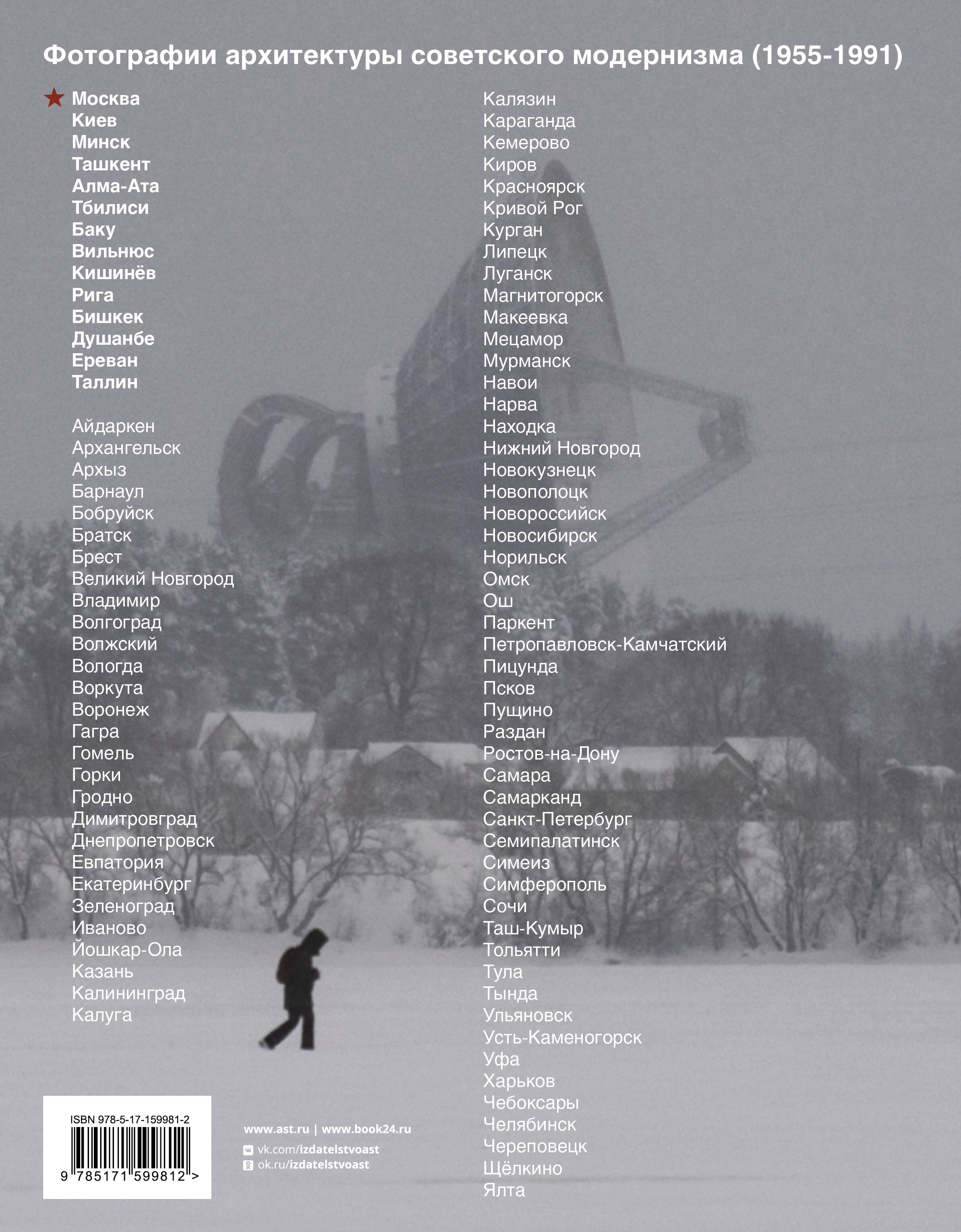 Как выглядели советские города? Фотограф-документалист и путешественник Арсений Котов собрал в книге «Советские города» коллекцию архитектурных шедевров советской эпохи. Сотни красочных фотографий дополнены интересными описаниями и фактами из истории. Впечатляющие снимки грандиозных зданий и сооружений воссоздают атмосферу того времени и позволяют проникнуться эстетикой советского модернизма – одного из самых масштабных и недооцененных явлений в мировом искусстве. Сегодня облик городов стремительно меняется, и у читателей есть возможность запечатлеть в памяти богатое архитектурное наследие советского прошлого, проникнуться его красотой и изучить его художественное своеобразие.
