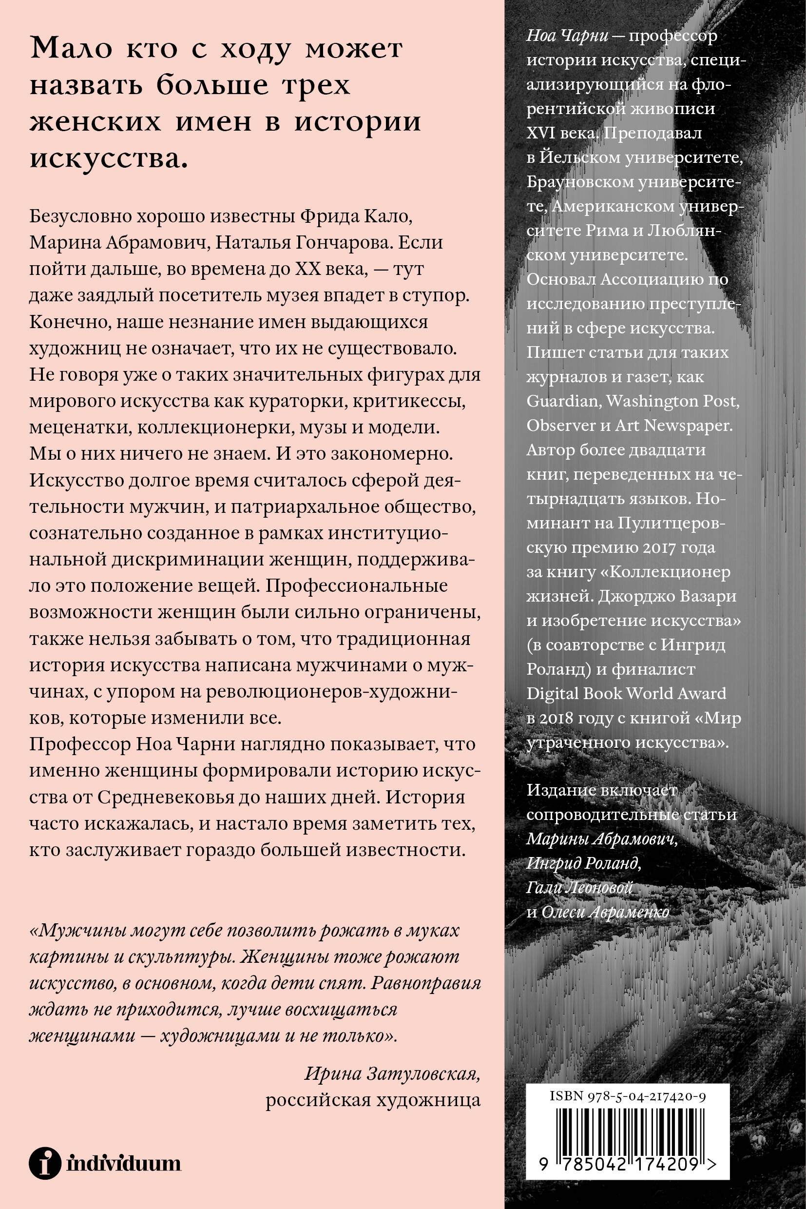 Профессор Ноа Чарни наглядно показывает, что именно женщины формировали историю искусства от Средневековья до наших дней. История часто искажалась, и настало время заметить тех, кто заслуживает гораздо большей известности.