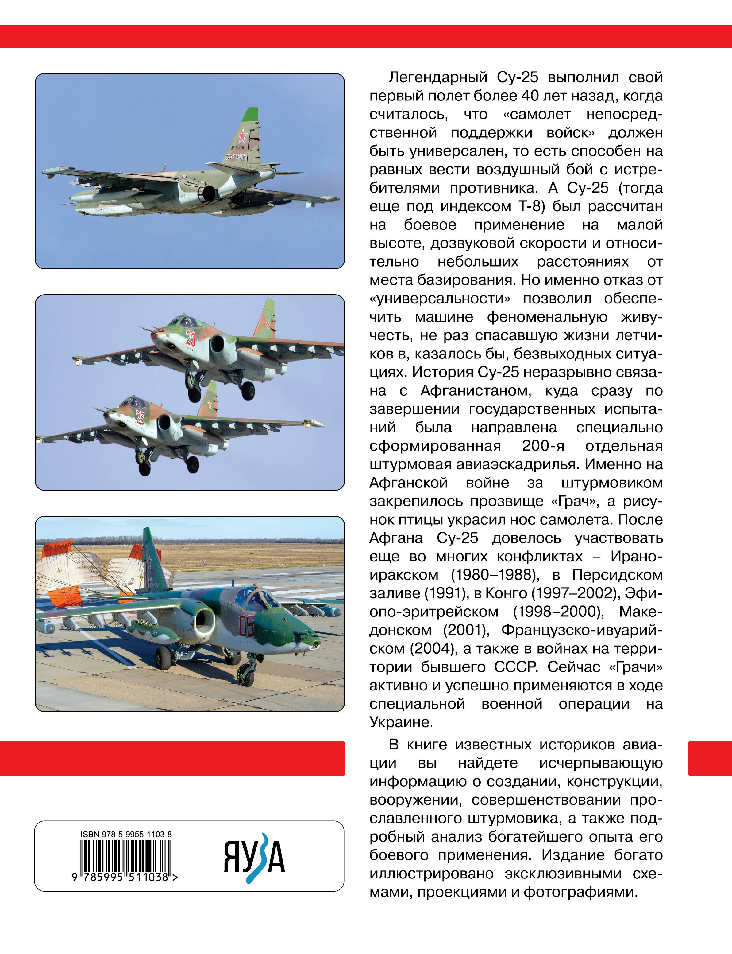 Легендарный Су-25 выполнил свой первый полет более четверти века назад, когда считалось, что «самолет непосредственной поддержки войск» должен быть универсален, то есть способен на равных вести воздушный бой с истребителями противника. А Су-25 (тогда еще под индексом Т-8) был рассчитан на боевое применение на малой высоте, дозвуковой скорости и относительно небольших расстояниях от места базирования. Но именно отказ от «универсальности» позволил обеспечить машине феноменальную живучесть, не раз спасавшую жизни летчиков в, казалось бы, безвыходных ситуациях. История Су-25 неразрывно связана с Афганистаном, куда сразу по завершении государственных испытаний была направлена специально сформированная 200-я отдельная штурмовая авиаэскадрилья. Именно на Афганской войне за штурмовиком закрепилось прозвище «Грач», а рисунок птицы украсил нос самолета. После Афгана Су-25 довелось участвовать еще во многих конфликтах — Ирано-иракском (1980—1988), в Персидском заливе (1991), в Конго (1997—2002), Эфиопо-эритрейском (1998—2000), Македонском (2001), Французско-ивуарийском (2004), а также в войнах на территории бывшего СССР. Сейчас «Грачи» активно и успешно применяются в ходе Специальной военной операции на Украине.