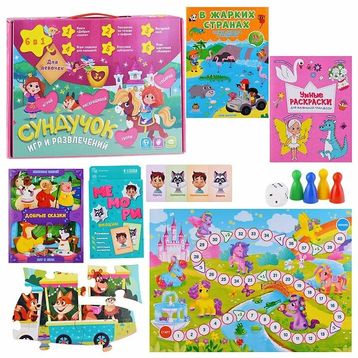 Сундучок игр и развлечений для девочек 6 в 1
