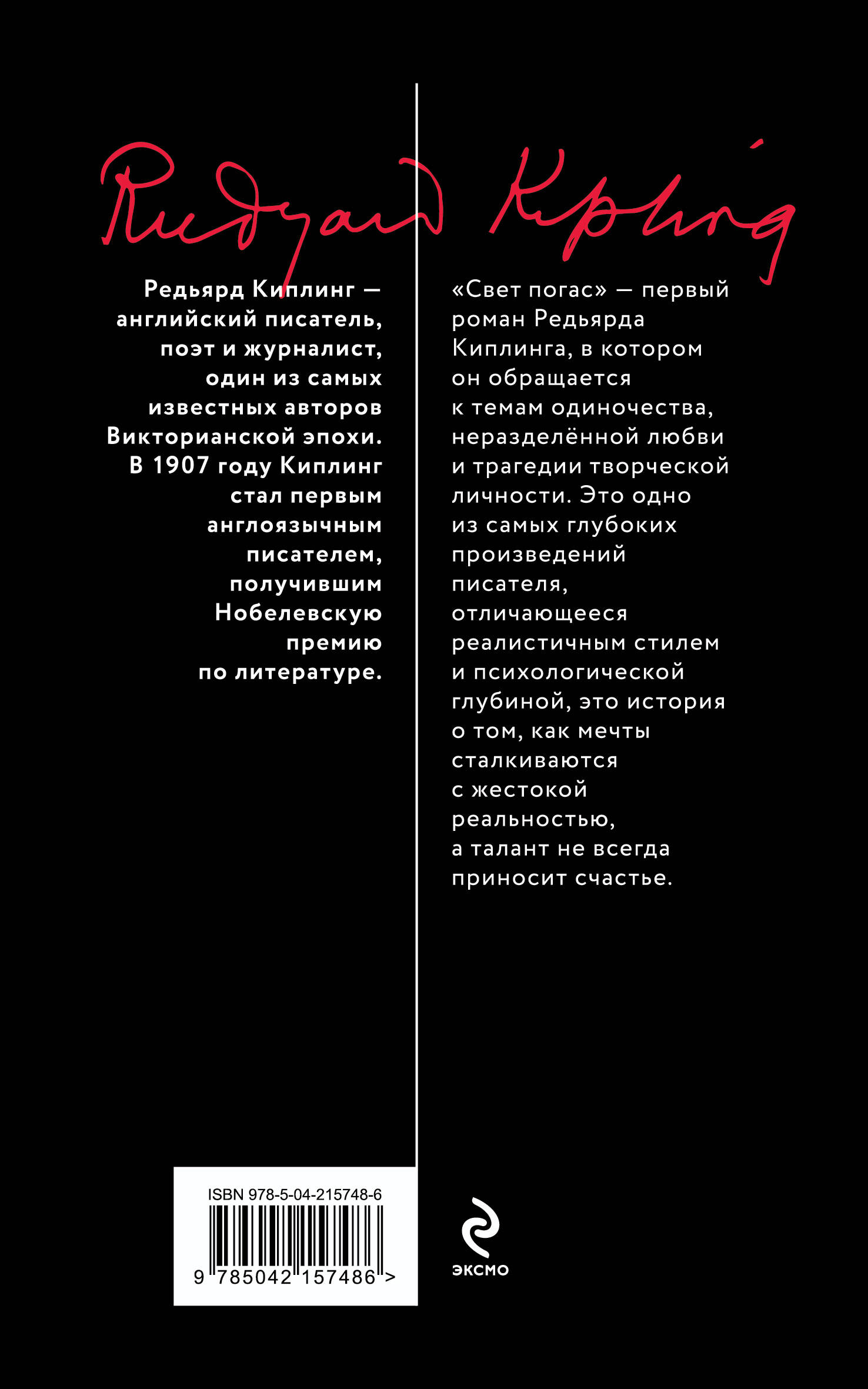 "Свет погас" — первый роман Редьярда Киплинга, в котором он обращается к темам одиночества, неразделённой любви и трагедии творческой личности. Это одно из самых глубоких произведений писателя, отличающееся реалистичным стилем и психологической глубиной — это история о том, как мечты сталкиваются с жестокой реальностью, а талант не всегда приносит счастье.