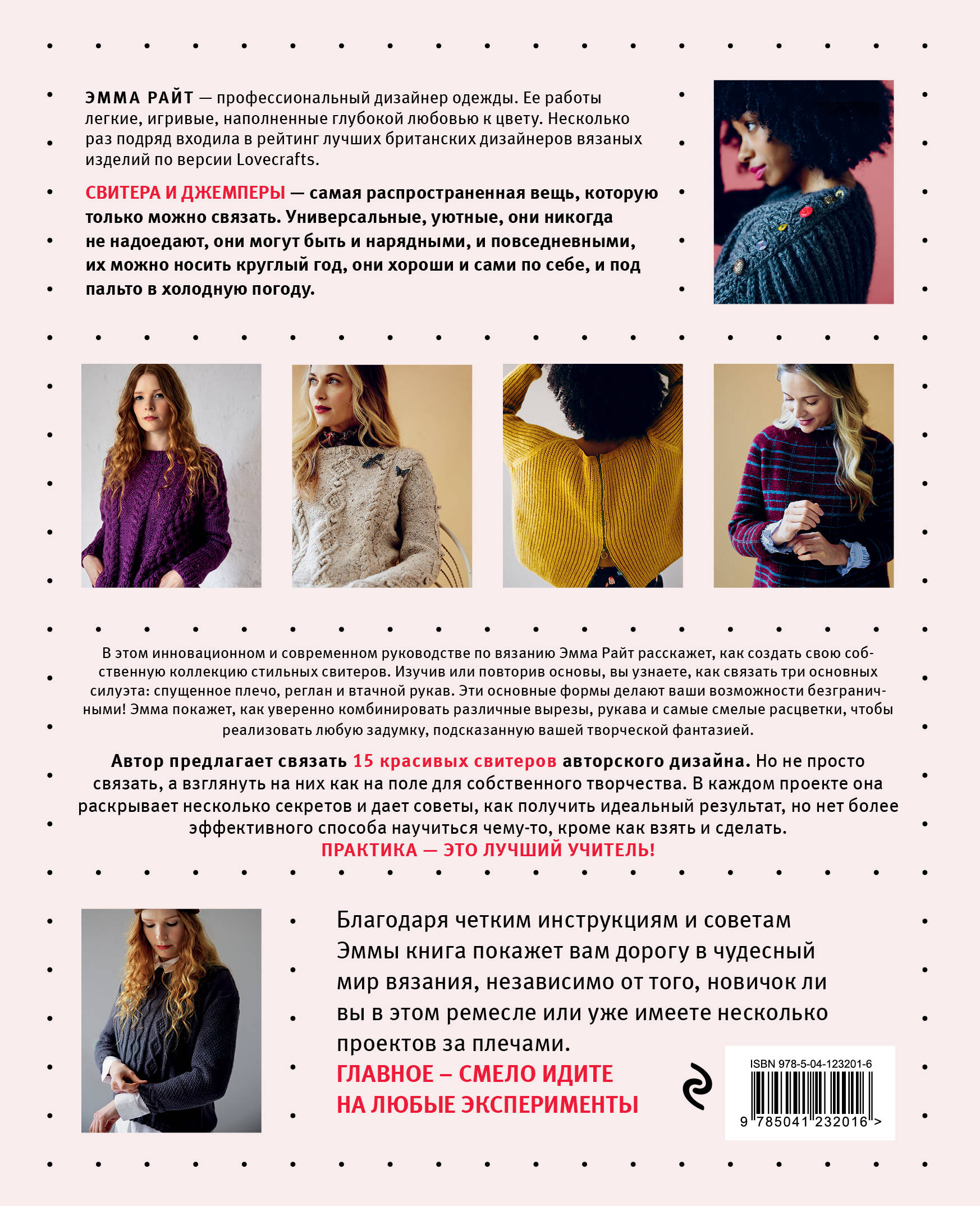 Элегантно, стильно, просто! Именно эти слова характеризуют 15 уникальных моделей свитеров, которые представлены в книге потрясающего британского дизайнера Эммы Райт. Это настоящая философия современного вязания — творить просто, с удовольствием, без каких-либо рамок и ограничений. Эмма поставила себе задачу доказать, что каждый из нас обладает безграничным творческим потенциалом, и призывает к смелым экспериментам, давая для них прочную практическую и теоретическую основу.