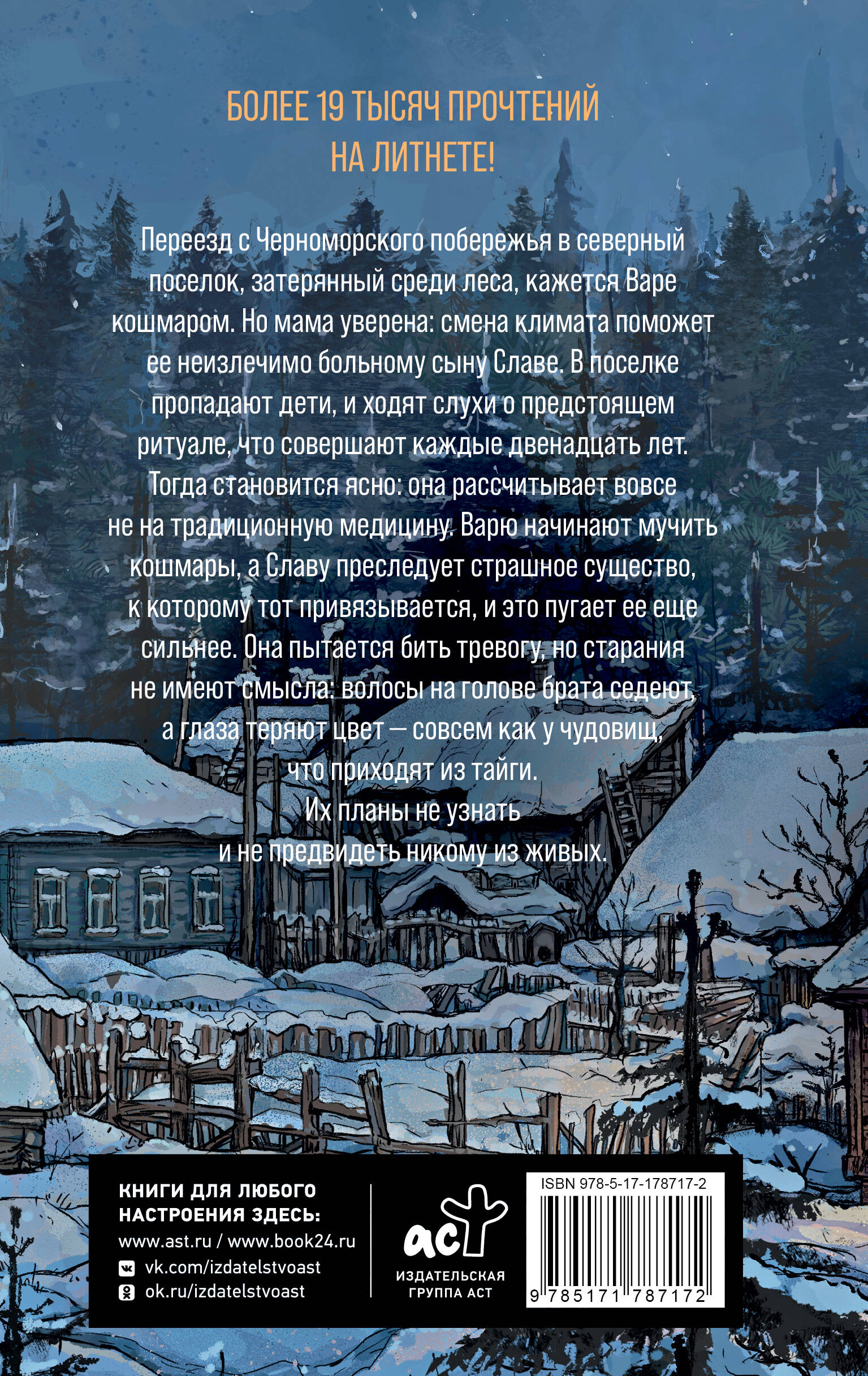 Переезд с Черноморского побережья в северный поселок, затерянный среди леса, кажется Варе кошмаром. Но мама уверена: смена климата поможет ее неизлечимо больному сыну Славе. В поселке пропадают дети, и ходят слухи о предстоящем ритуале, что совершают каждые двенадцать лет. Тогда становится ясно: она рассчитывает вовсе не на традиционную медицину. Варю начинают мучить кошмары, а Славу преследует страшное существо, к которому тот привязывается, и это пугает ее еще сильнее. Она пытается бить тревогу, но старания не имеют смысла: волосы на голове брата седеют, а глаза теряют цвет – совсем как у чудовищ, что приходят из тайги.