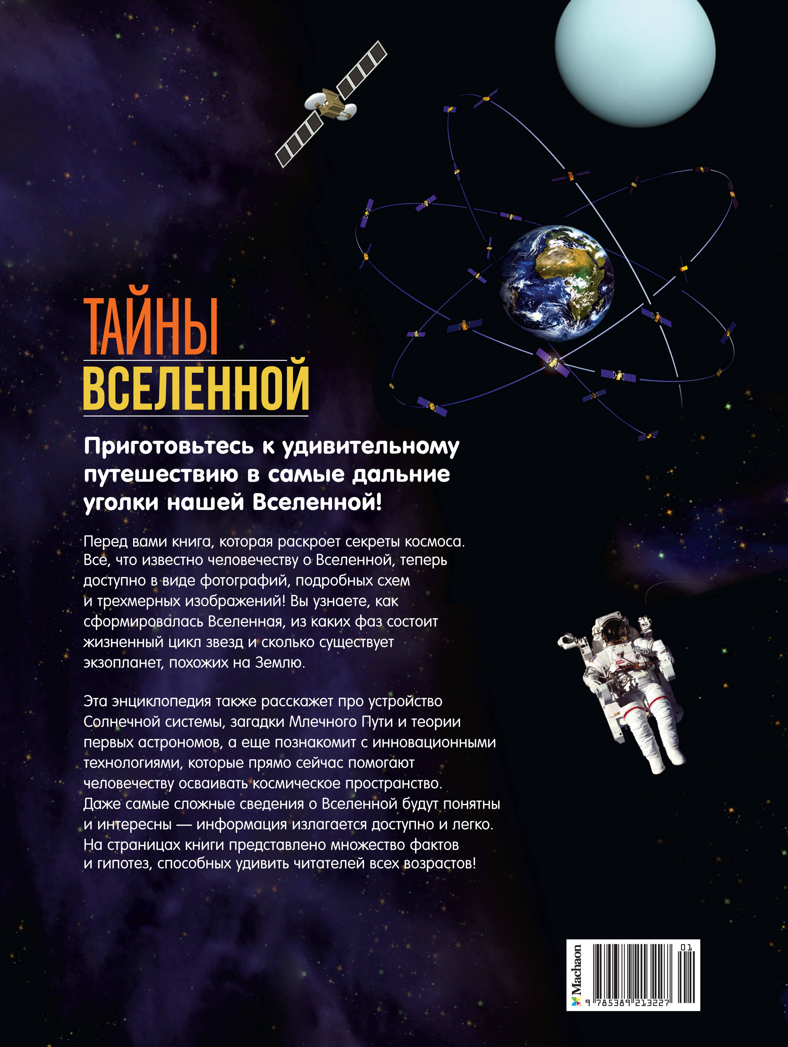 Стоит только поднять взгляд в ночное небо, чтобы увидеть бесконечное множество звезд. А с этой книгой можно совершить настоящее путешествие в самые дальние уголки Вселенной и раскрыть секреты космоса! Всё, что известно человечеству о Вселенной, теперь доступно в виде захватывающих фотографий, подробных схем и трехмерных изображений! Читатели узнают, как сформировалась Вселенная, из каких фаз состоит жизненный цикл звезд и сколько существует экзопланет, похожих на Землю. Эта энциклопедия для школьников также расскажет про устройство Солнечной системы, загадки Млечного Пути и теории первых астрономов, а еще познакомит с инновационными технологиями, которые прямо сейчас помогают человечеству осваивать космическое пространство. Даже самые сложные сведения о Вселенной будут понятны и интересны для детей — все излагается доступно и легко. На страницах этой книги про космос представлено множество фактов и гипотез, способных удивить читателей всех возрастов! Книга станет отличным подарком для школьников, а также поможет подготовиться к докладам и контрольным работам. Только самые последние факты и проверенная информация!
