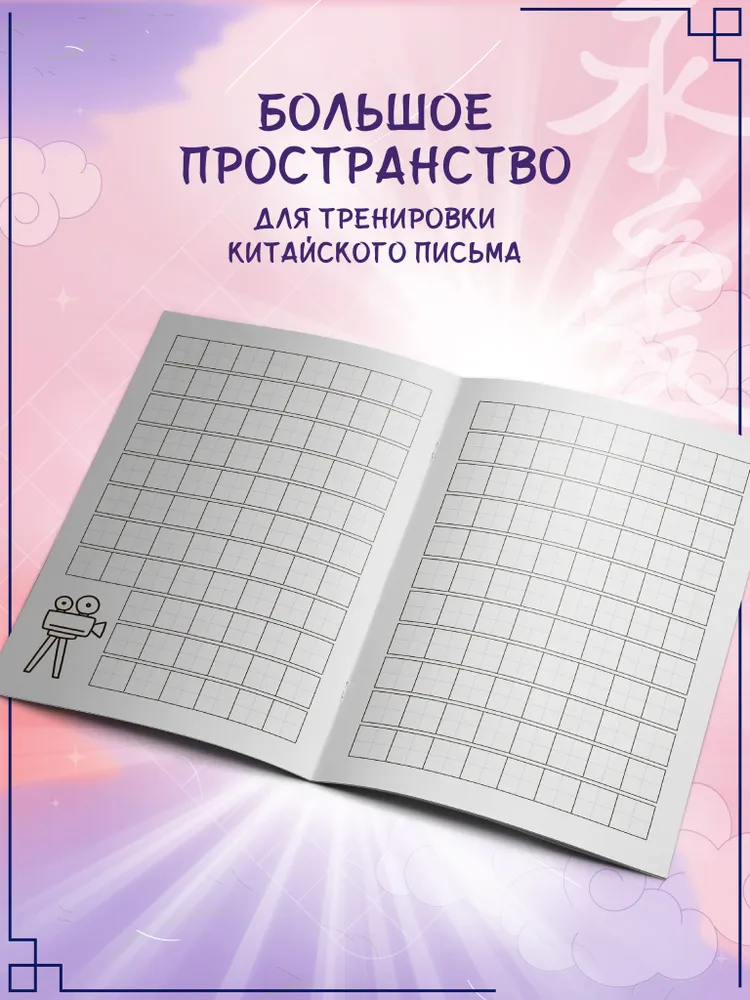 Тетрадь для записи иероглифов будет полезна всем, кто изучает китайский язык. Прописывание иероглифов в специальном поле поможет развить навык китайского письма и ускорит процесс запоминания новых слов.