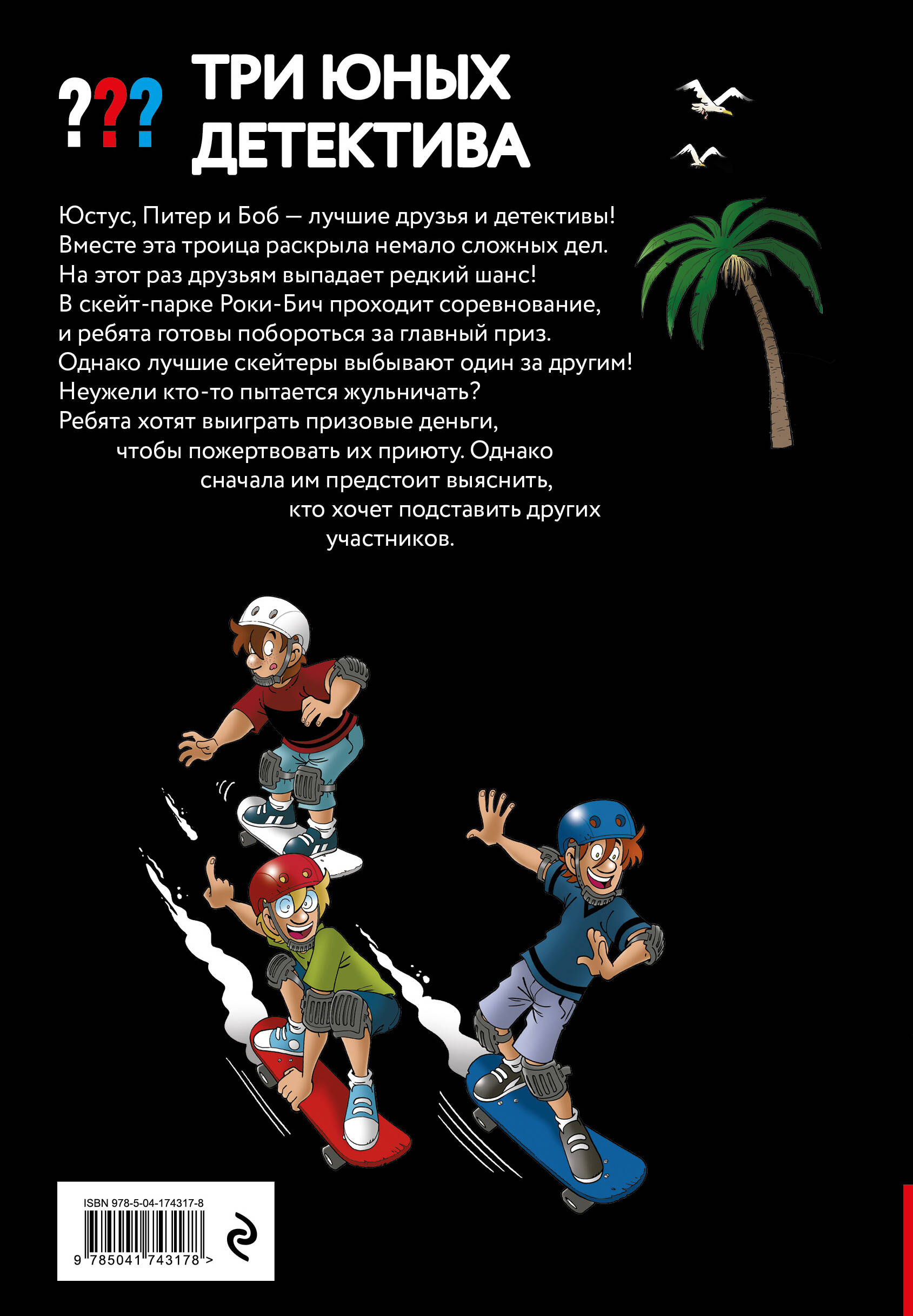 Юстус, Питер и Боб — лучшие друзья и детективы! Вместе эта троица раскрыла немало сложных дел. На этот раз друзьям выпадает редкий шанс! В скейт-парке Роки-Бич проходит соревнование, и ребята готовы побороться за главный приз. Однако лучшие скейтеры выбывают один за другим! Неужели кто-то пытается жульничать? Ребята попытаются выиграть призовые деньги, чтобы пожертвовать их приюту. Однако сначала им предстоит выяснить, кто хочет подставить других участников.