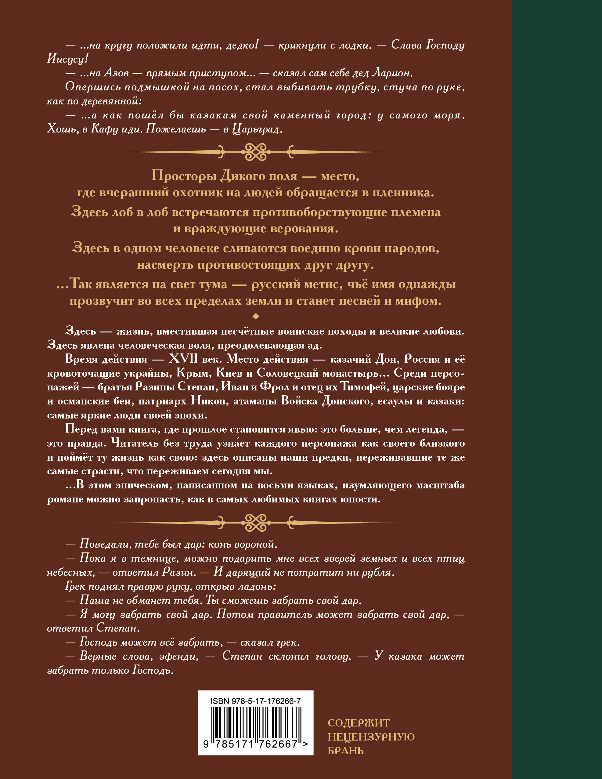 — Невероятной силы и огромного масштаба исторический роман: о казаке, бунтаре, главном русском пирате Степане Разине и его вольных людях.