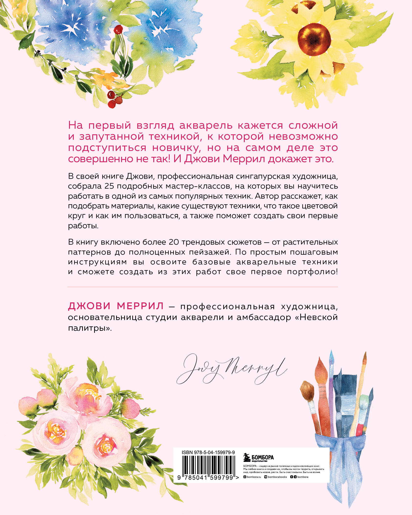 Автор книги Джови Меррил — профессиональная художница, основательница собственной студии акварели и амбассадор «Невской палитры», а ее видео на YouTube насчитывают сотни просмотров от подписчиков со всего мира.