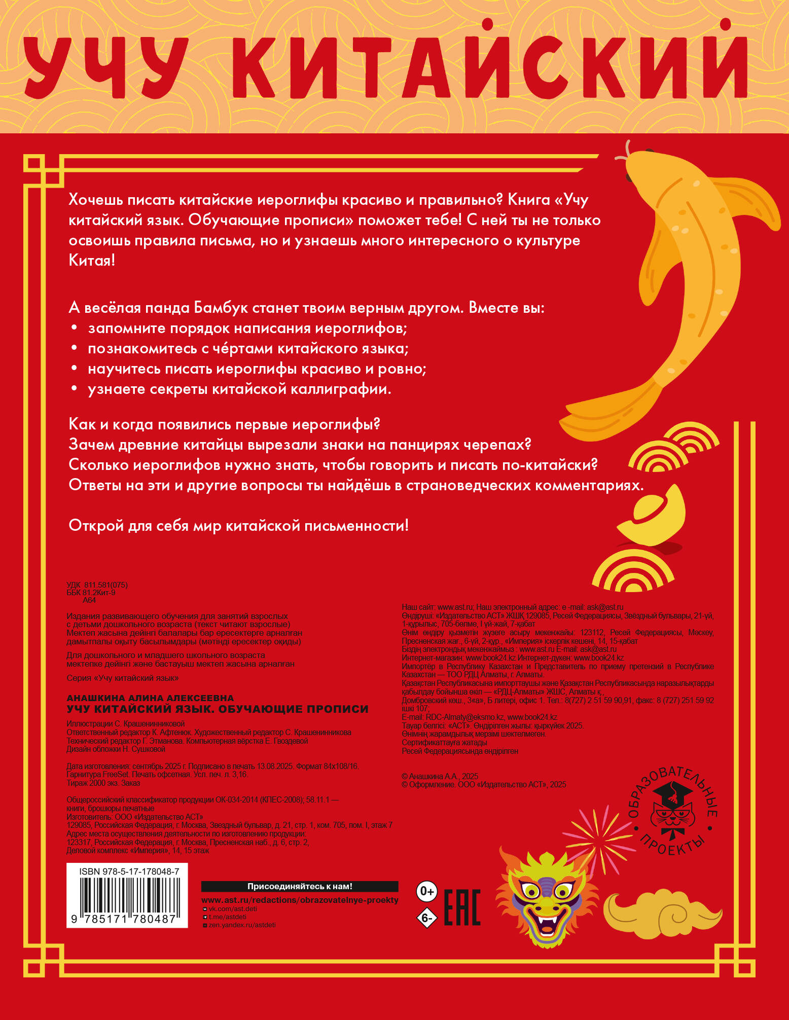 Хочешь писать китайские иероглифы красиво и правильно? Книга "Учу китайский язык. Обучающие прописи" поможет тебе! С ней ты не только освоишь правила письма, но и узнаешь много интересного о культуре Китая!