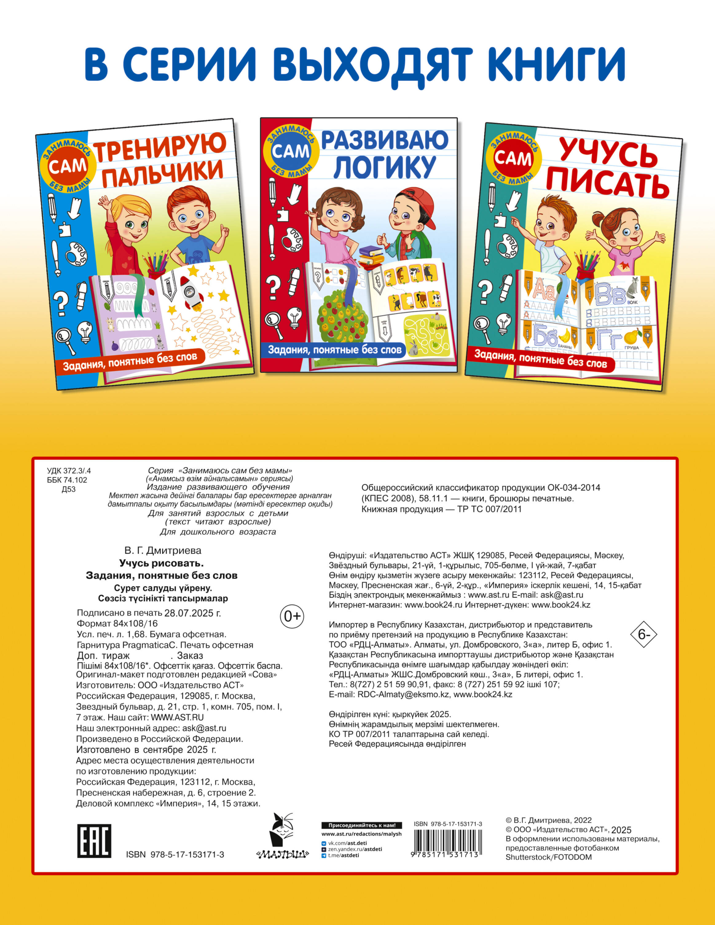«Занимаюсь сам без мамы» — серя книг для развития детской инициативы и самостоятельности. Интересные задания в картинках развивают творчество и креатив, художественный вкус, цветовосприятие, воображение и графические навыки. Замечательная книга наполнит жизнь малыша новыми интересными впечатлениями, поможет сформировать у ребенка способность к активным и самостоятельным действиям.