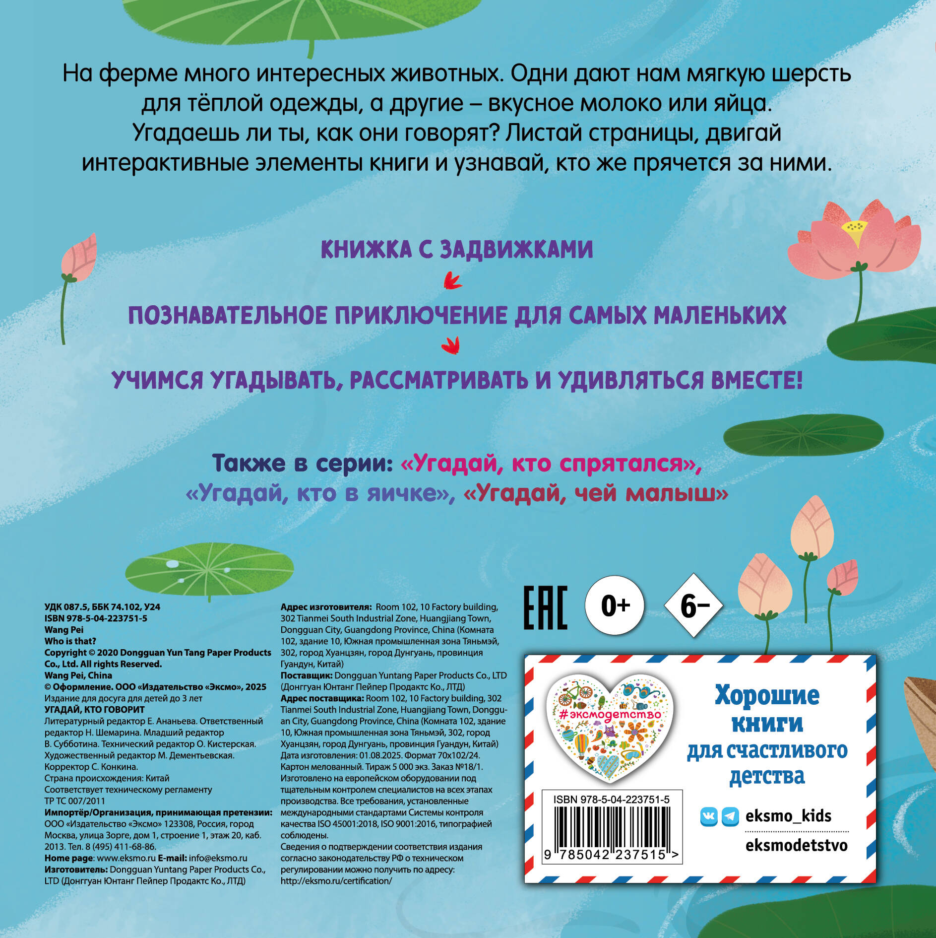 Кто говорит хрю-хрю? А кто из обитателей фермы с самого утра будит всех своей громкой песней? Скорее открывайте книжку с задвижками и знакомьтесь с весёлыми домашними животными!
