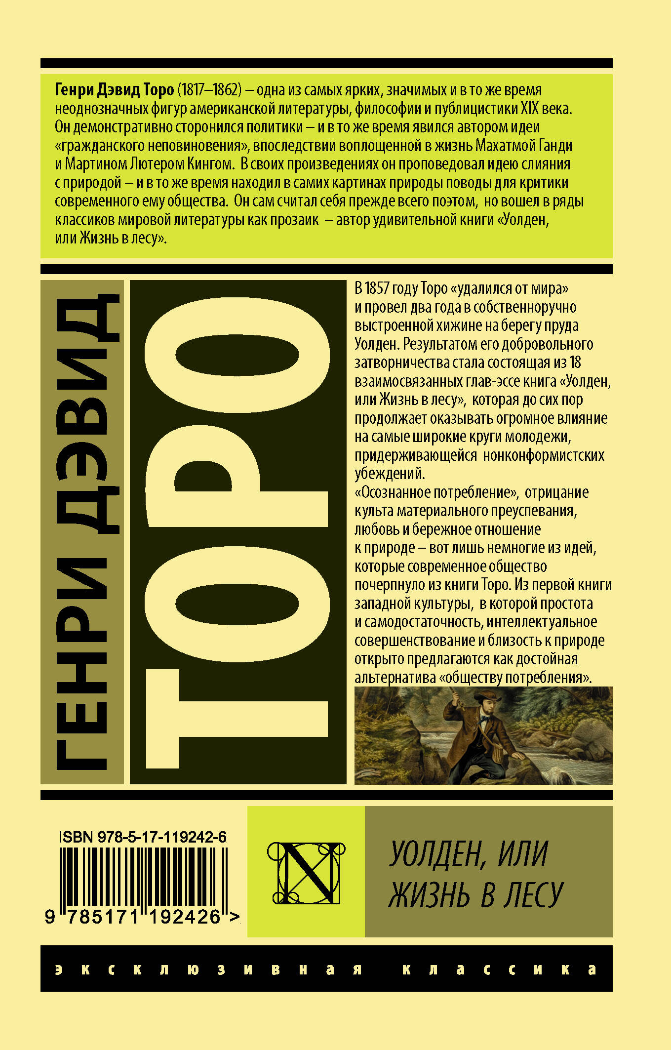 "Осознанное потребление", отрицание культа материального преуспевания, любовь и бережное отношение к природе — вот лишь немногие из идей, которые современное общество почерпнуло из книги Торо. Из первой книги западной культуры, в которой простота и самодостаточность, интеллектуальное совершенствование и близость к природе открыто предлагаются как достойная альтернатива "обществу потребления".