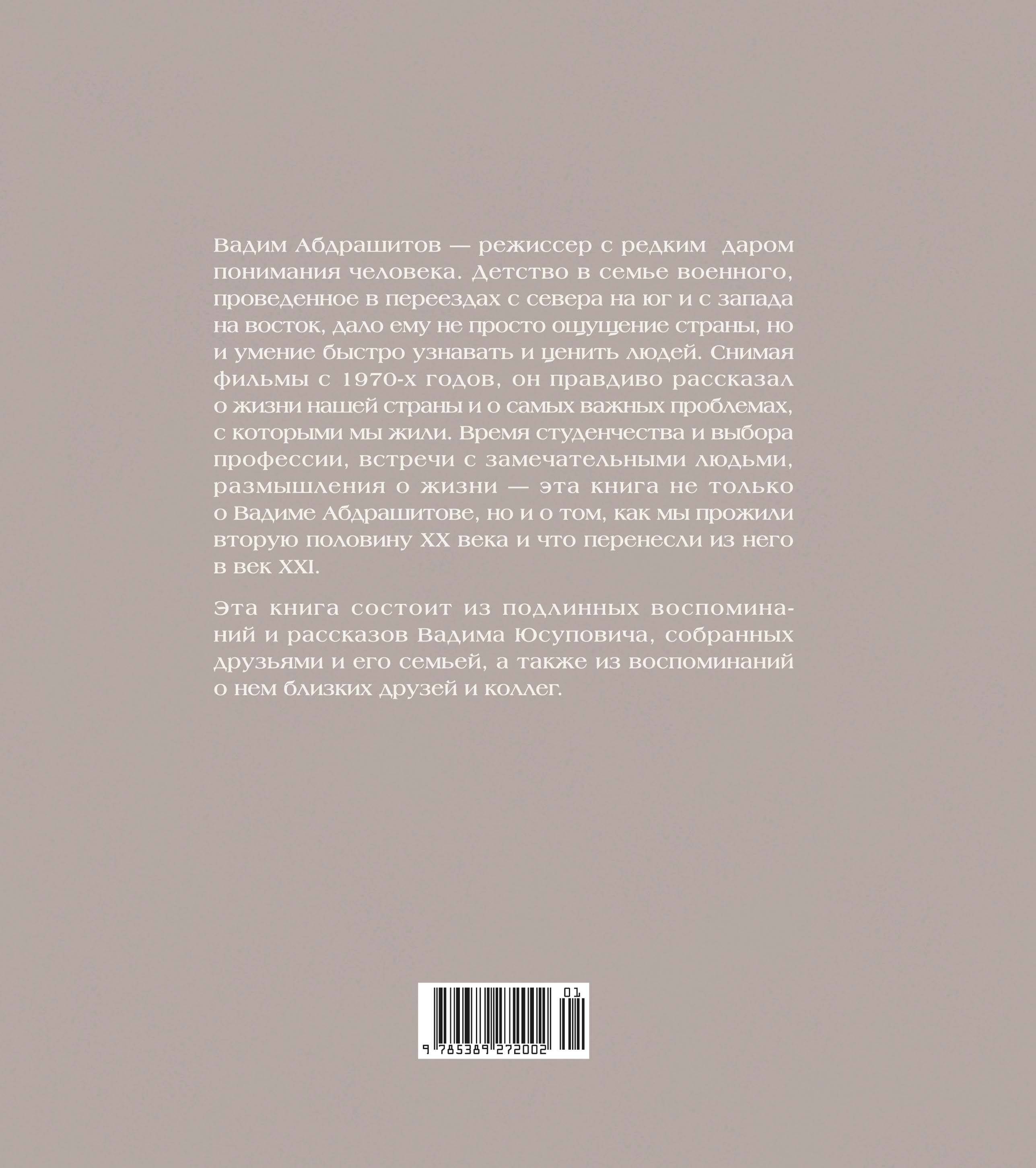 Один из самых уважаемых и острых режиссеров советского кинематографа, Вадим Абдрашитов описал в своих фильмах жизнь страны за тридцать лет. Каждый его фильм – это исследование. И эта книга – исследование нашей жизни и исследование процесса создания кино, рассказанная самим режиссером.