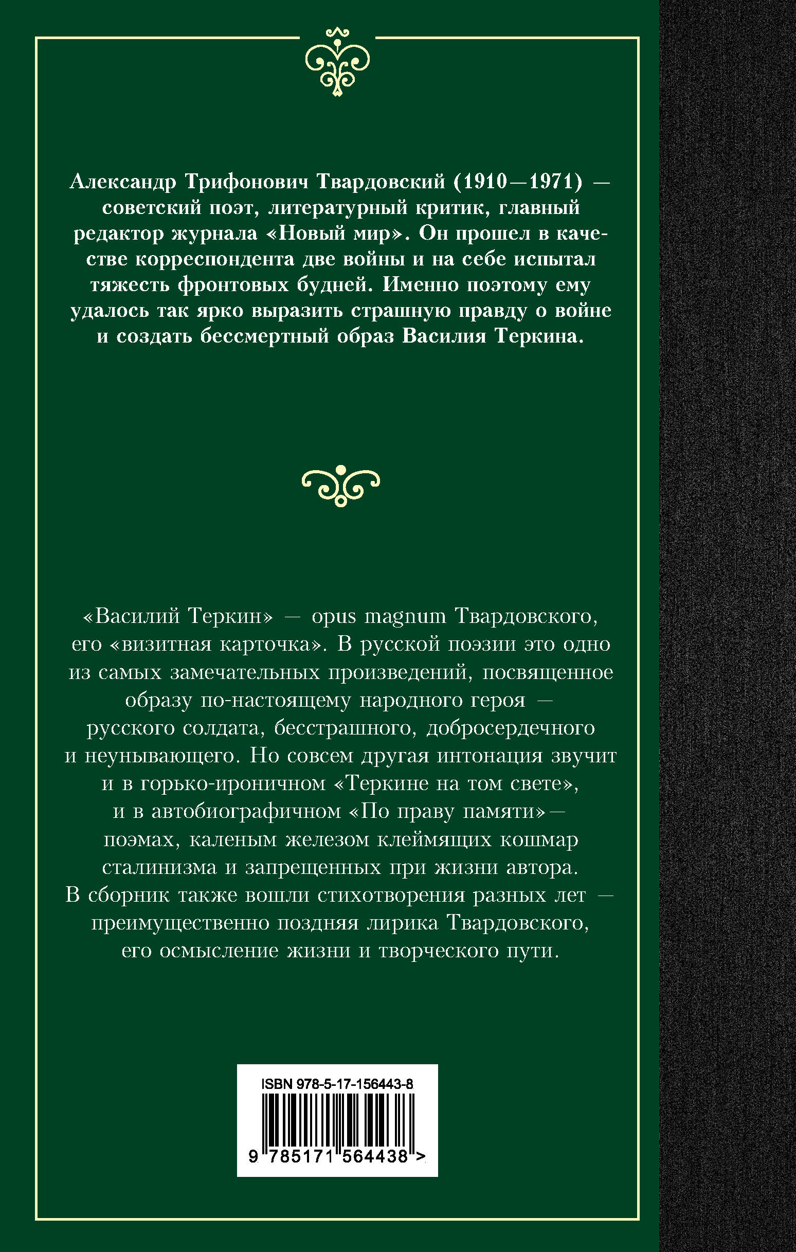 "Василий Теркин" — opus magnum Твардовского, его "визитная карточка". В русской поэзии это одно из самых замечательных произведений, посвященное образу по-настоящему "народного" героя — русского солдата, бесстрашного, добросердечного и неунывающего. Но совсем другая интонация звучит и в горько-ироничном "Теркине на том свете", и в автобиографичном "По праву памяти", — поэмах, каленым железом клеймящих кошмар сталинизма и запрещенных при жизни автора.