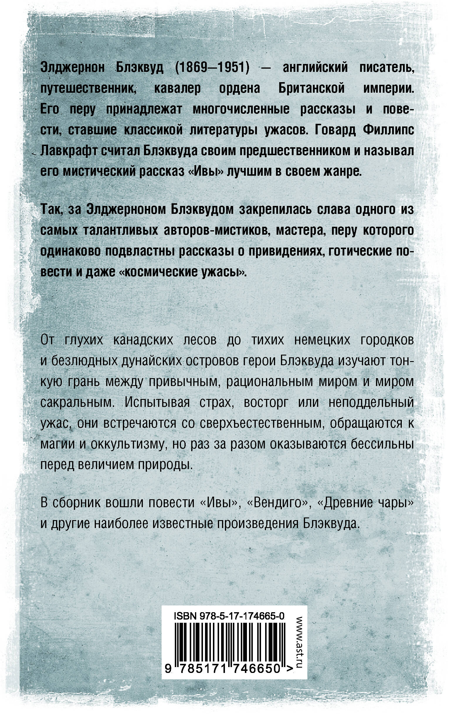 — В это издание вошли повести «Ивы», «Вендиго», «Древние чары», «Пустой дом» и другие лучшие образцы малой прозы Блэквуда.
