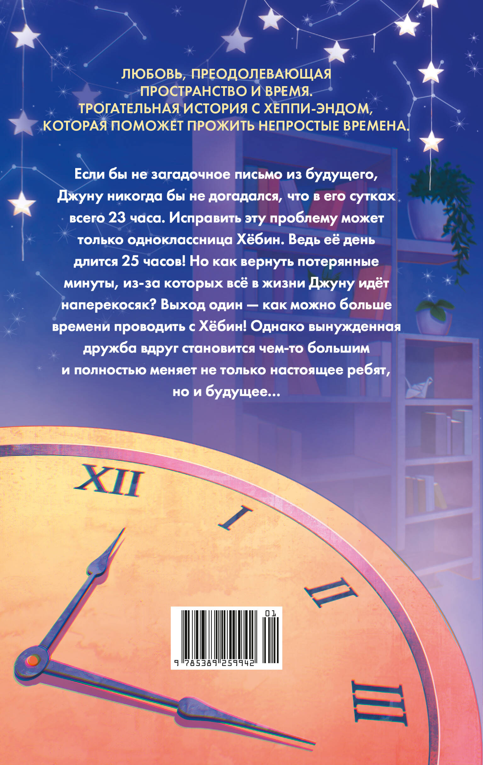 Если бы не загадочное письмо из будущего, Джуну никогда бы не догадался, что в его сутках всего 23 часа. Исправить эту проблему может только одноклассница Хёбин. Ведь её день длится 25 часов! Но как вернуть потерянные минуты, из-за которых всё в жизни Джуну идёт наперекосяк? Выход один – как можно больше времени проводить с Хёбин! Однако вынужденная дружба вдруг становится чем-то большим и полностью меняет не только настоящее ребят, но и будущее…