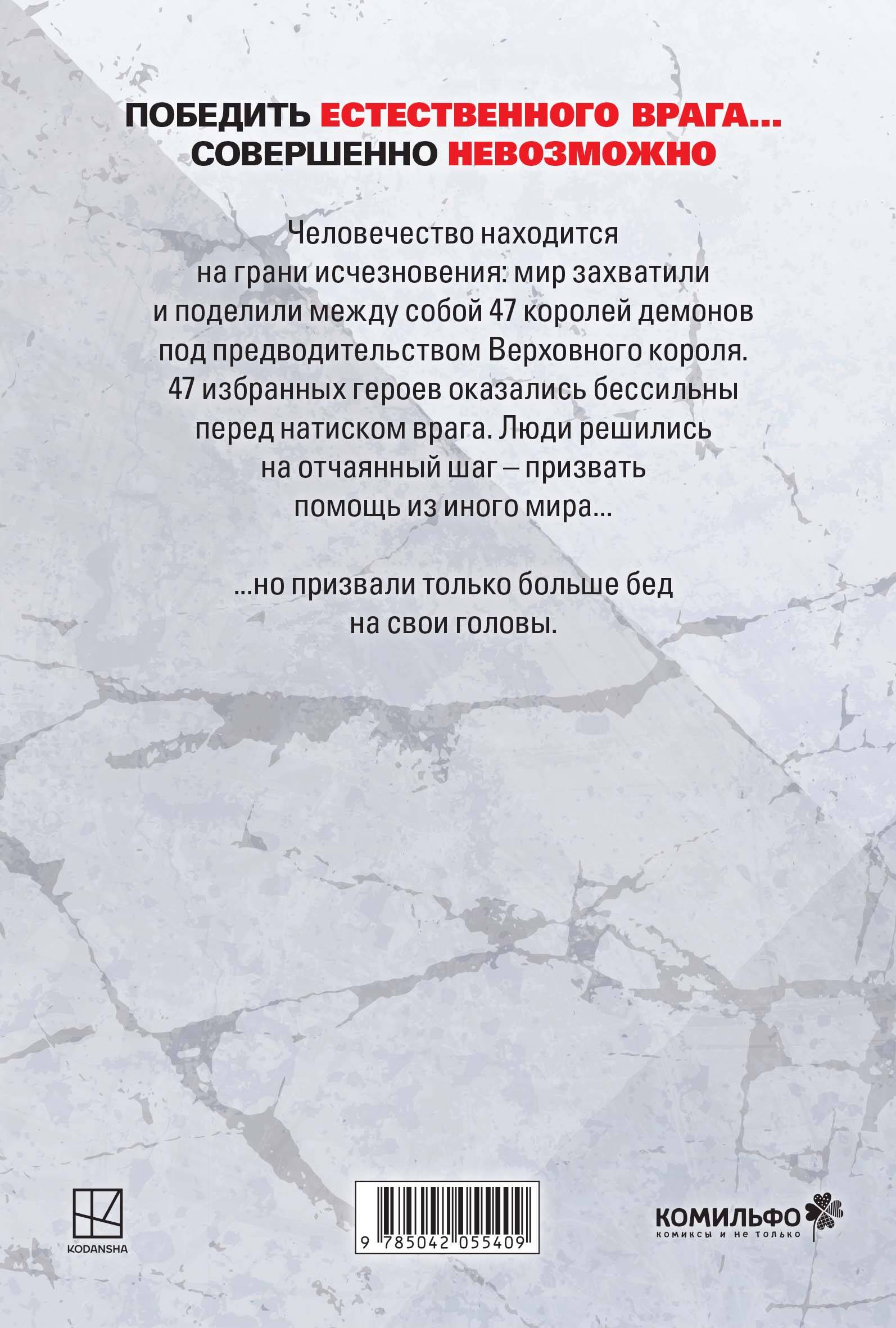 Ультимативный исекай стартует с истории гибели человечества: демоны завоевали всю Землю и почти истребили людской род. 47 избранных героев, вооружённых магическими мечами, пали перед натиском армии Верховного короля демонов. Отчаявшись, люди призвали на помощь цивилизацию из иного мира… но в итоге получили только больше проблем на свои головы.