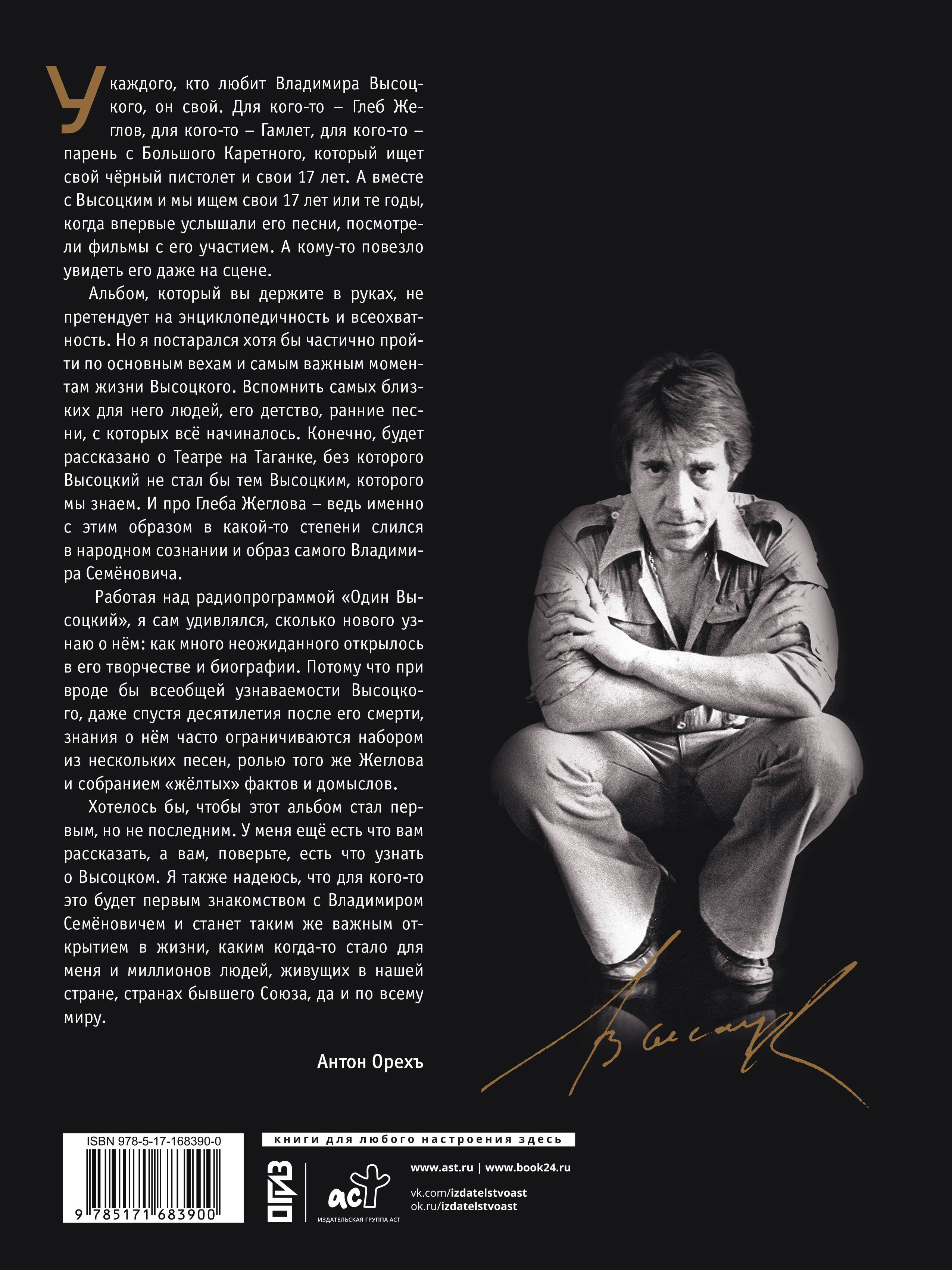 Альбом, который вы держите в руках, не претендует на энциклопедичность и всеохватность. Но автор постарался хотя бы частично пройти по основным вехам и самым важным моментам жизни Высоцкого. Вспомнить самых близких для него людей, его детство, ранние песни, с которых всё начиналось. Конечно, будет рассказано о Театре на Таганке, без которого Высоцкий не стал бы тем Высоцким, которого мы знаем. И про Глеба Жеглова – ведь именно с этим образом в какой-то степени слился в народном сознании и образ самого Владимира Семёновича.