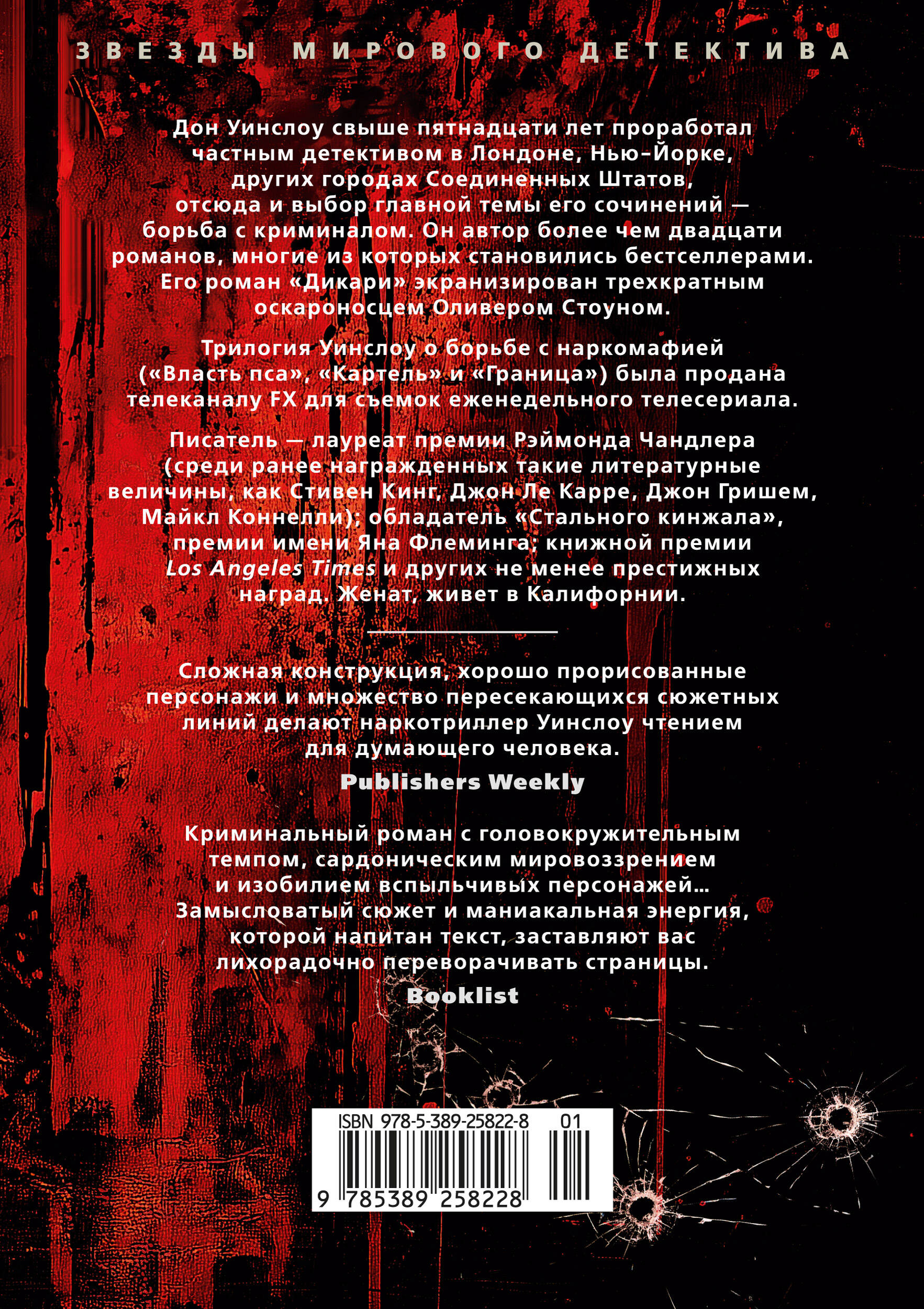 «Власть пса» — история жестокой и кровавой войны с международной наркопреступностью, растянувшаяся во времени почти на полвека и охватившая в пространстве огромную территорию от Мексики и Южной Америки до Китая и Ватикана.