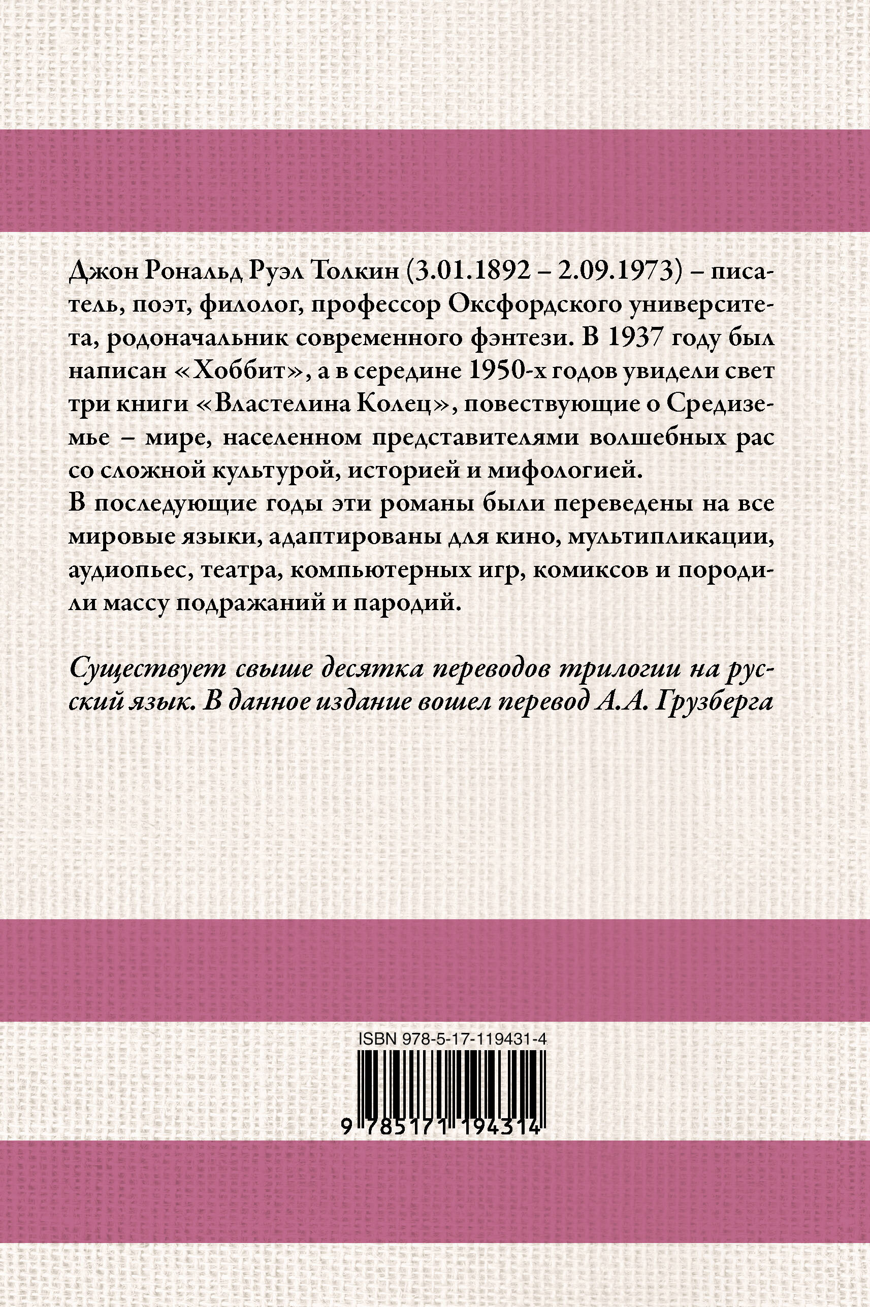 Существует свыше десятка переводов трилогии на русский язык. В данное издание вошел перевод А. Грузберга.