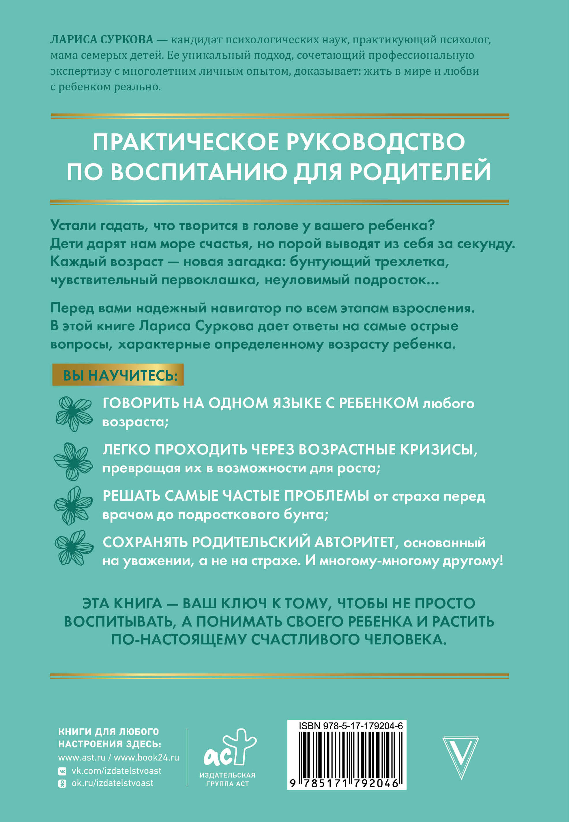 Перед вами надежный навигатор по всем этапам взросления. В этой книге Лариса Суркова дает ответы на самые острые вопросы, характерные определенному возрасту ребенка.