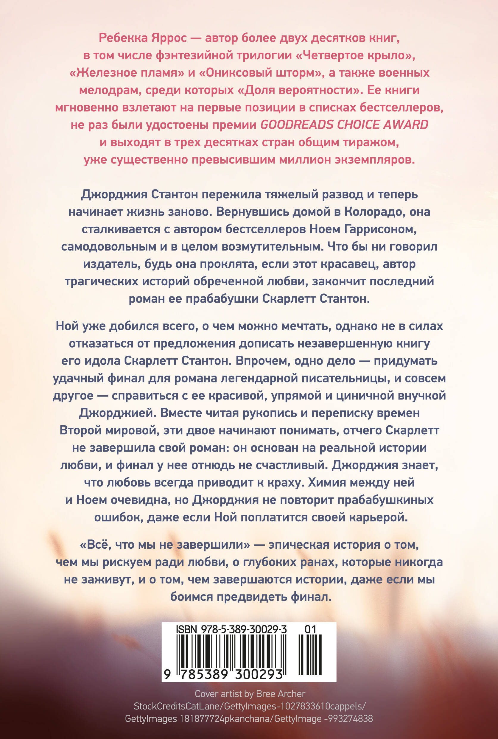 «Всё, что мы не завершили» — эпическая история о том, чем мы готовы рисковать ради любви, о ранах, которые слишком глубоки и никогда не заживут, и о том, чем завершаются истории, даже если мы боимся предвидеть финал.