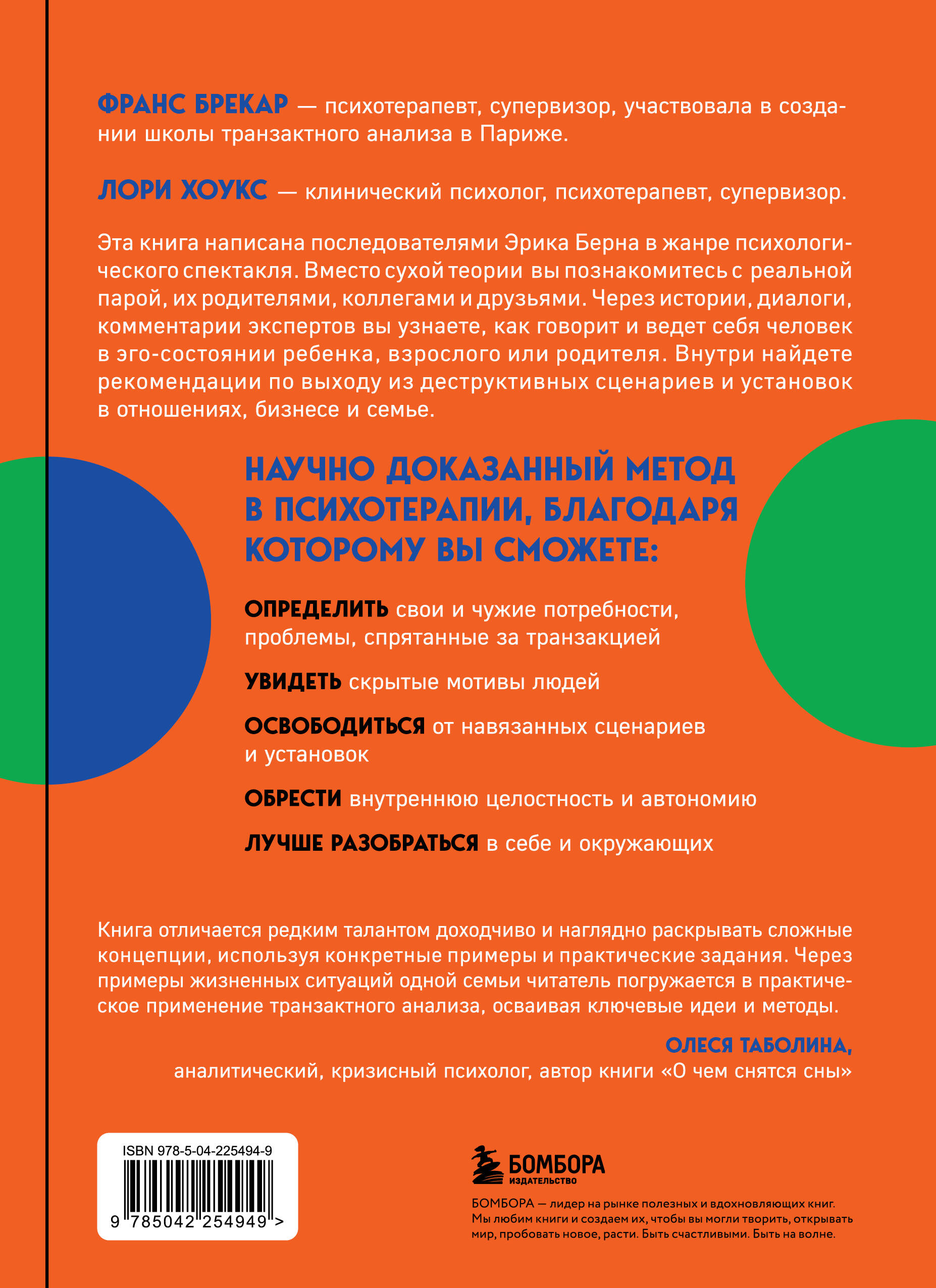 «Книга отличается редким талантом доходчиво и наглядно раскрывать сложные концепции, используя конкретные примеры и практические задания. Через примеры жизненных ситуаций одной семьи читатель погружается в практическое применение транзактного анализа, осваивая ключевые идеи и методы. Теория становится живой и применимой в реальной жизни, демонстрируя свою ценность и пользу каждому читателю». — Олеся Панарина, кризисный психолог, юнгианский психолог, действительный член ПСАП