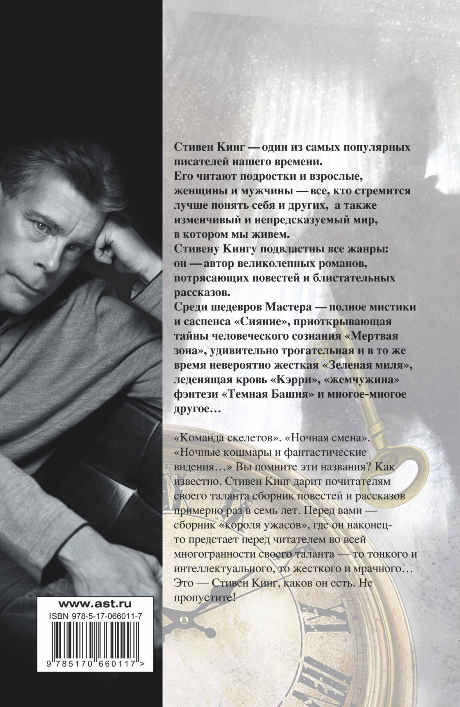 "Команда скелетов". "Ночная смена". "Ночные кошмары и фантастические видения…" Вы помните эти названия? Как известно, Стивен Кинг дарит почитателям своего таланта сборник повестей и рассказов примерно раз в семь лет. Перед вами - сборник "короля ужасов", где он наконец-то предстает перед читателем во всей многогранности своего таланта - то тонкого и интеллектуального, то жесткого и мрачного… Это - Стивен Кинг, каков он есть. Не пропустите!