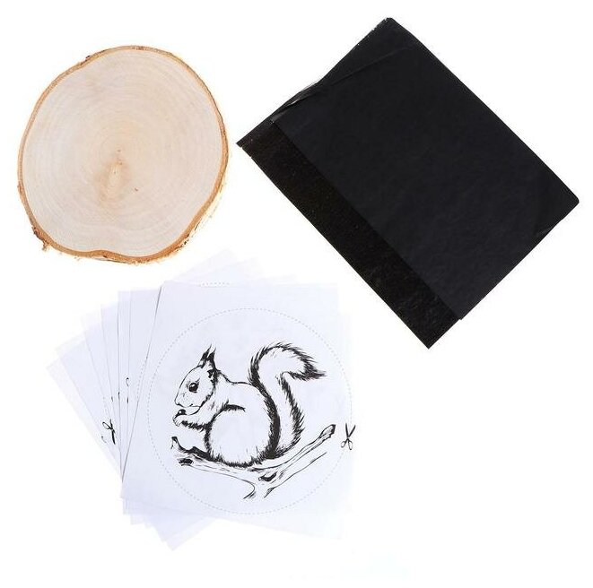 В набор входят 8 рисунков на выбор, которые можно перенести на спил дерева с помощью копировальной бумаги и создать контур для выжигания. Рисунки посвящены лесной тематике, они изображают диких животных в среде обитания, таких как медведь, лиса, волк, олень, сова, заяц, ёж и белка.
