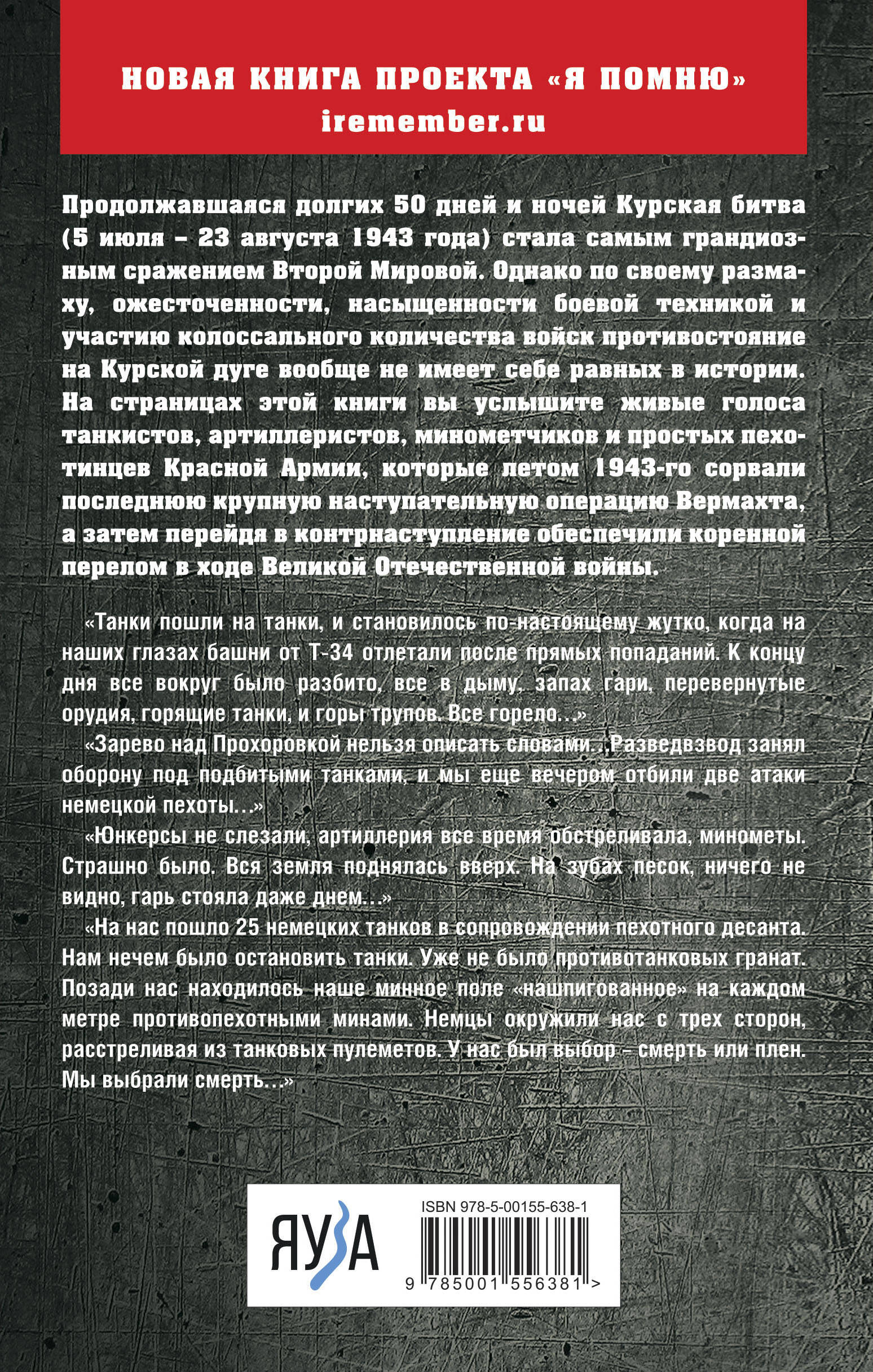 Продолжавшаяся долгих 50 дней и ночей Курская битва (5 июля – 23 августа 1943 года) стала самым грандиозным сражением Второй Мировой. Однако по своему размаху, ожесточенности, насыщенности боевой техникой и участию колоссального количества войск противостояние на Курской дуге вообще не имеет себе равных в истории. На страницах этой книги вы услышите живые голоса танкистов, артиллеристов, минометчиков и простых пехотинцев Красной Армии, которые летом 1943-го сорвали последнюю крупную наступательную операцию Вермахта, а затем перейдя в контр наступление обеспечили коренной перелом в ходе Великой Отечественной войны.